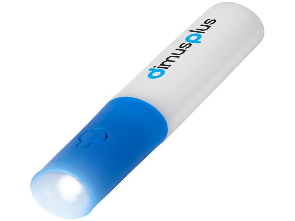 Карманный фонарик с 4 режимами. Цветную вставку можно сочетать с цветом вашего логотипа, который наносится на белую ручку фонарика.
