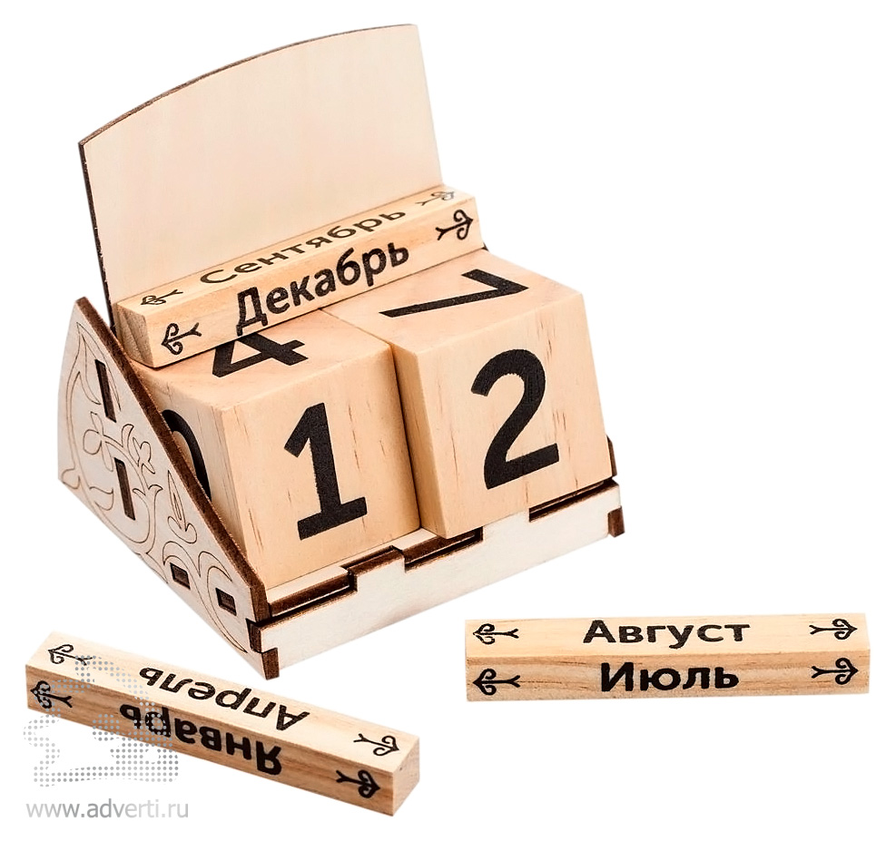 Календарь — это не обязательно разлинованный квадратами лист; существуют и намного более интересные решения, в частности, этот настольный вариант из кубиков и брусочков с названиями месяцев прекрасно подойдет для подарка. Необычный, экологичный, напоминающий детские игрушки. Кстати, его можно использовать как визитницу!