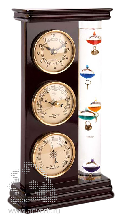 Сувенирная продукция с возможностью нанесения логотипа оптом - Погодная станция Марко Поло: часы, гигрометр, барометр, термометр Галилея