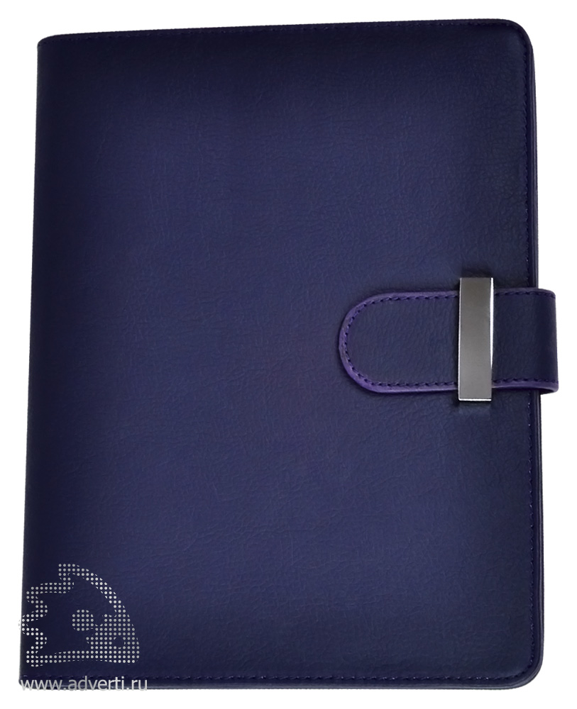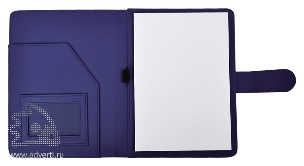 Папка формата A5 с металлической застежкой-хлястиком, кармашком под визитку и белым бумажным блоком, 50 листов