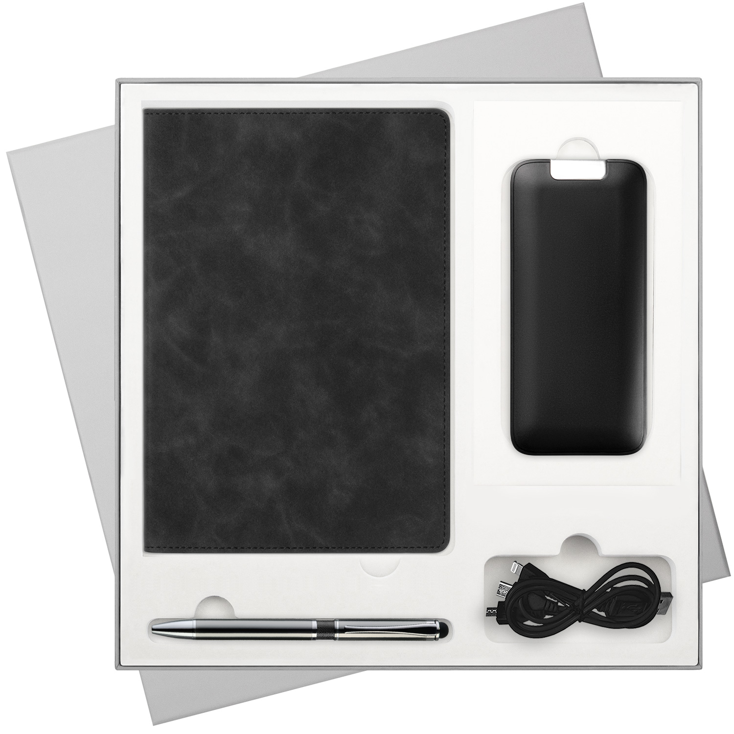Подарочная коробка с ложементом для ежедневника, ручки и аккумулятора