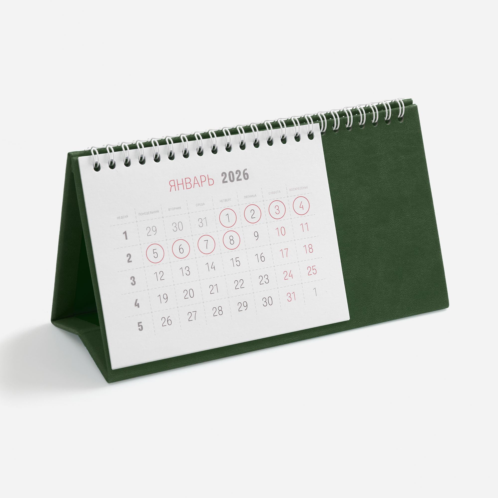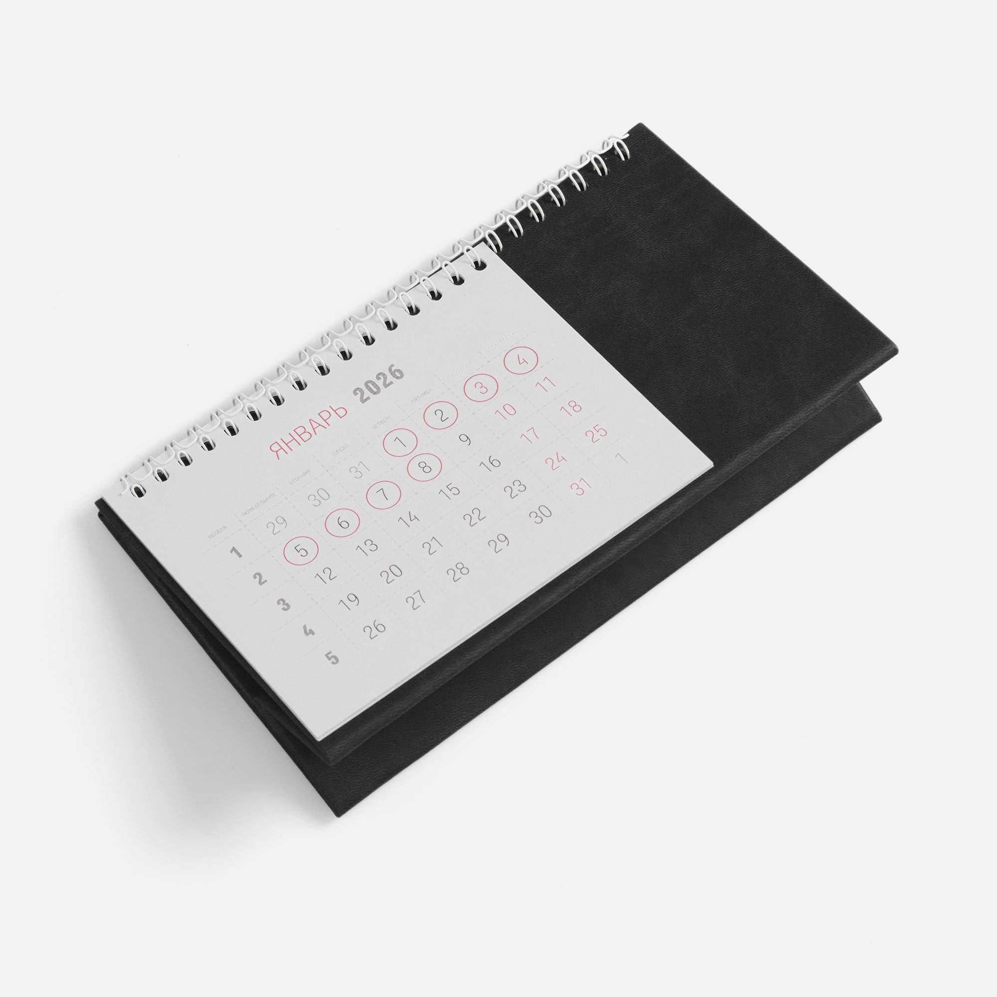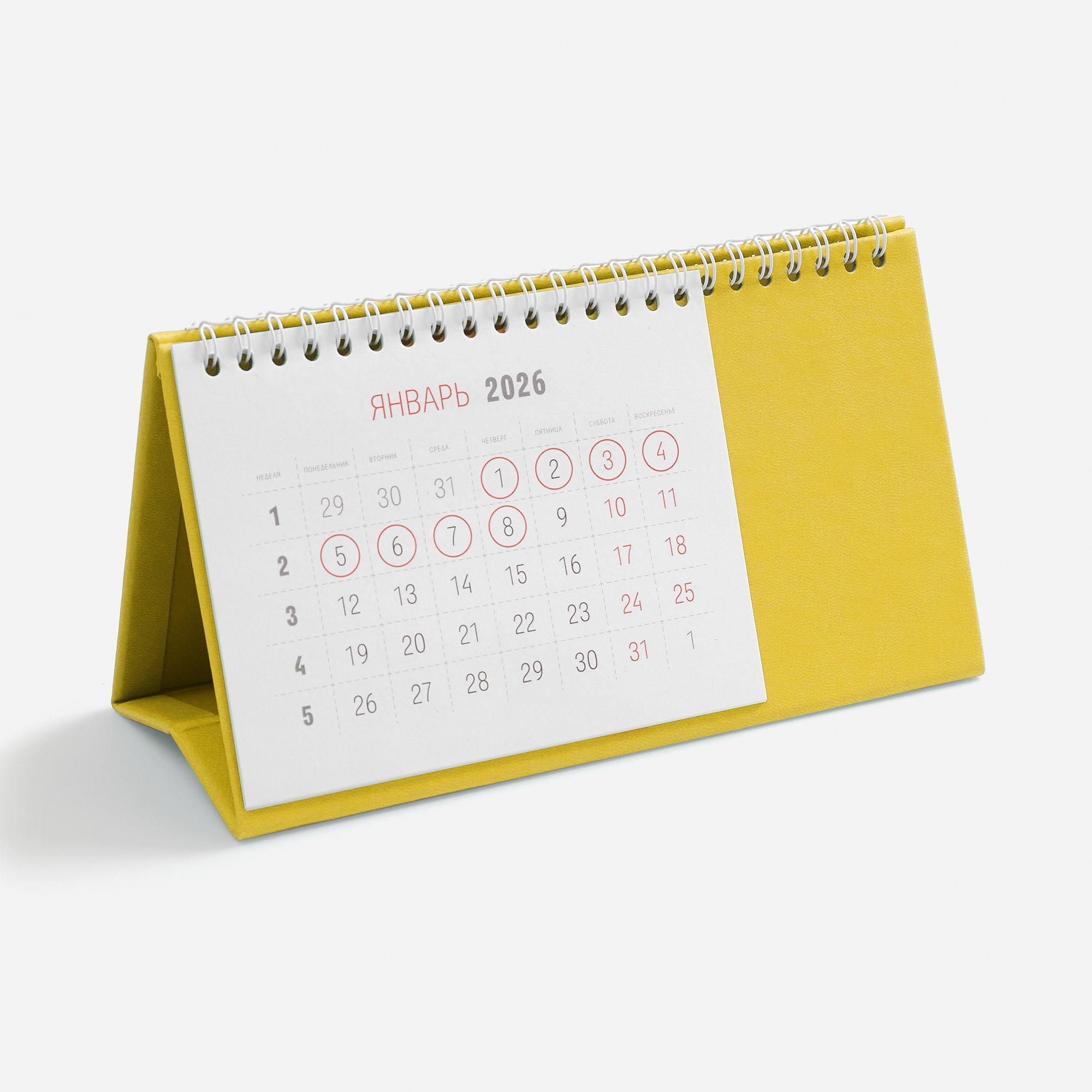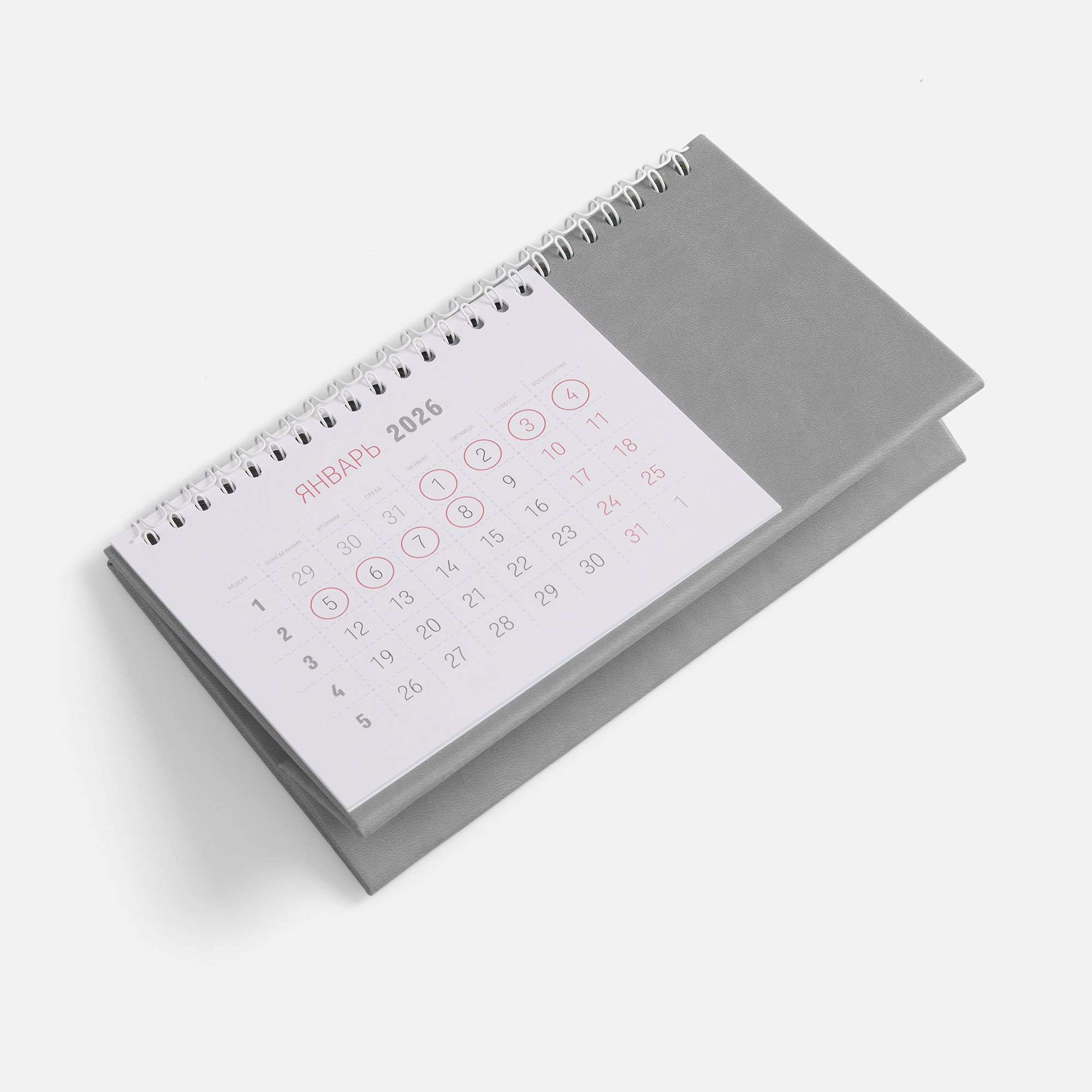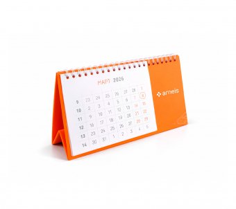 Настольный календарь — та вещь, на которую падает взгляд едва ли не чаще, чем на циферблат. Очень разумно решен вопрос нанесения: вы тратите минимум средств на нанесение своего логотипа сбоку, на корпус календаря, а не на каждый листок. Яркие насыщенные цвета подходят для нанесения тиснением наилучшим образом.