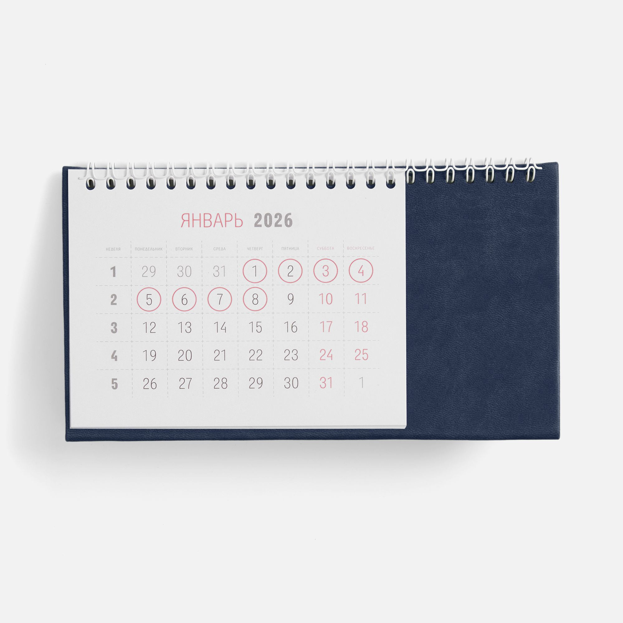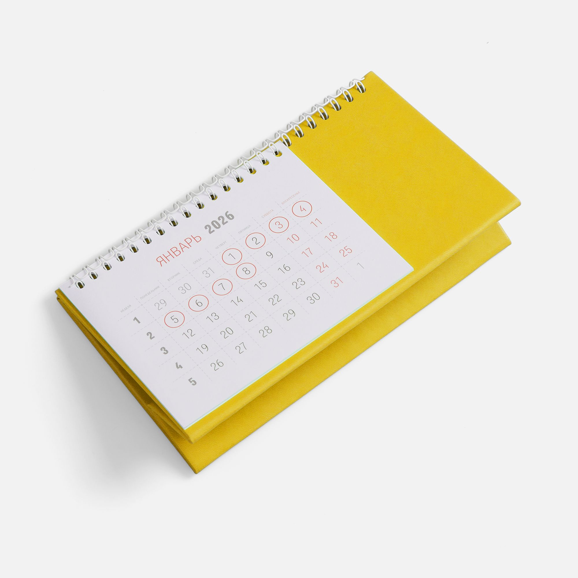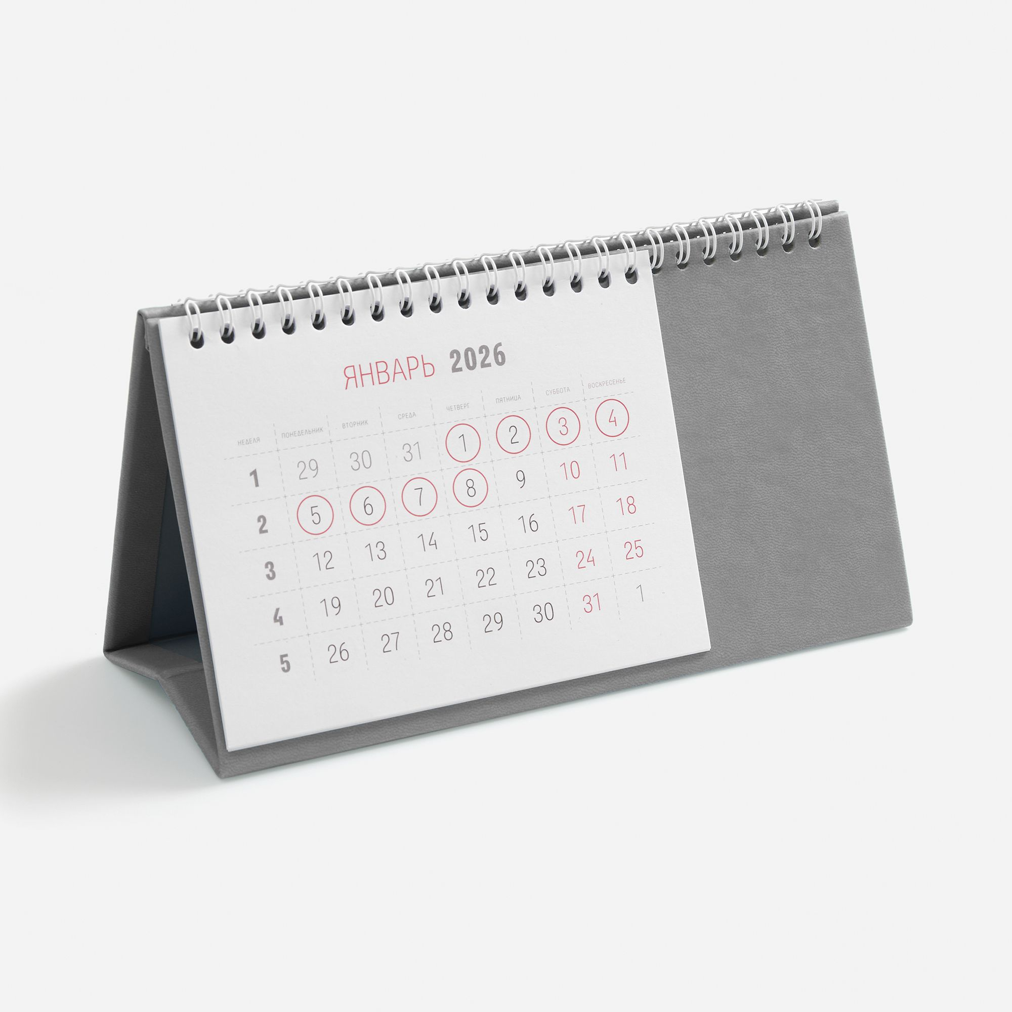 Настольный календарь — та вещь, на которую падает взгляд едва ли не чаще, чем на циферблат. Очень разумно решен вопрос нанесения: вы тратите минимум средств на нанесение своего логотипа сбоку, на корпус календаря, а не на каждый листок. Яркие насыщенные цвета подходят для нанесения тиснением наилучшим образом.