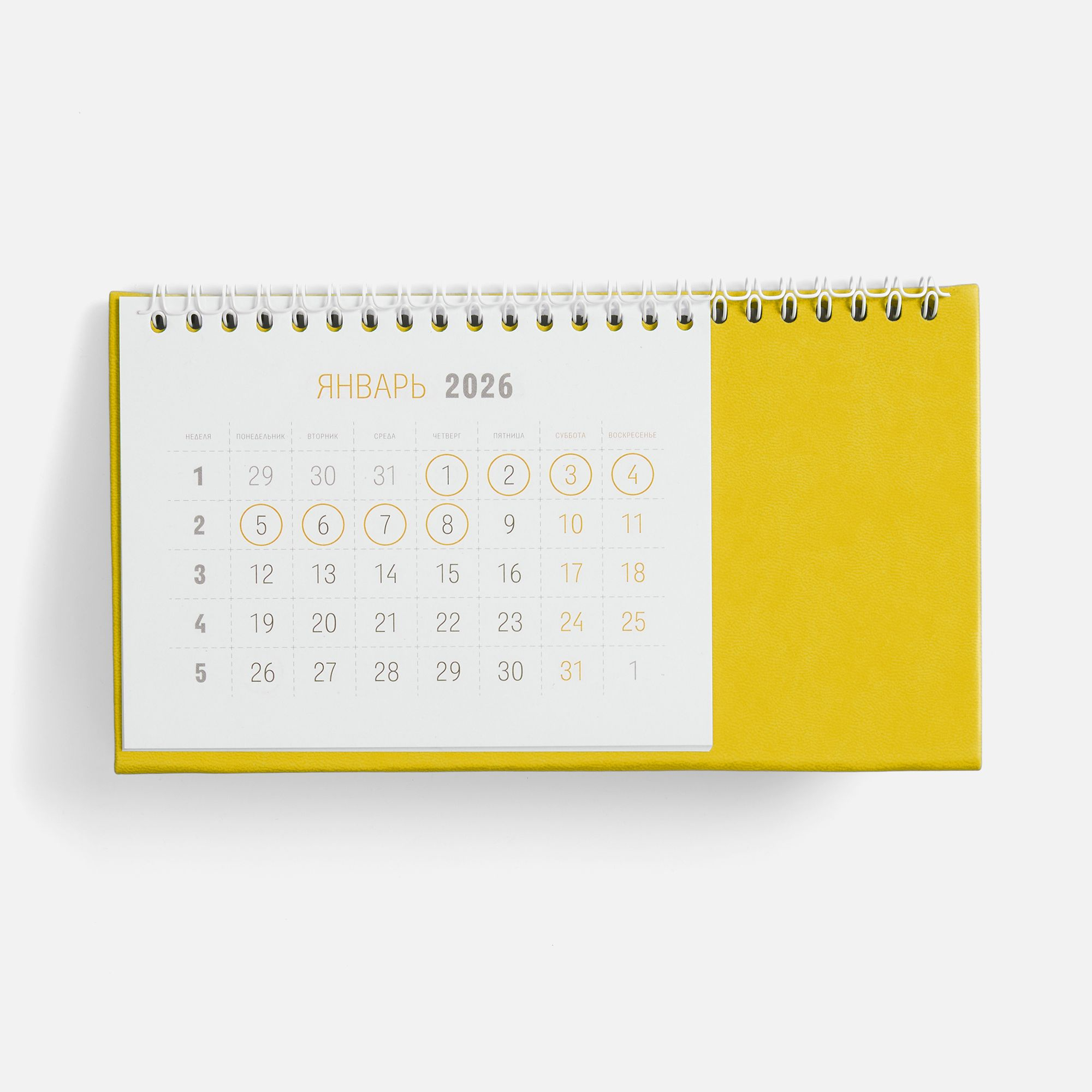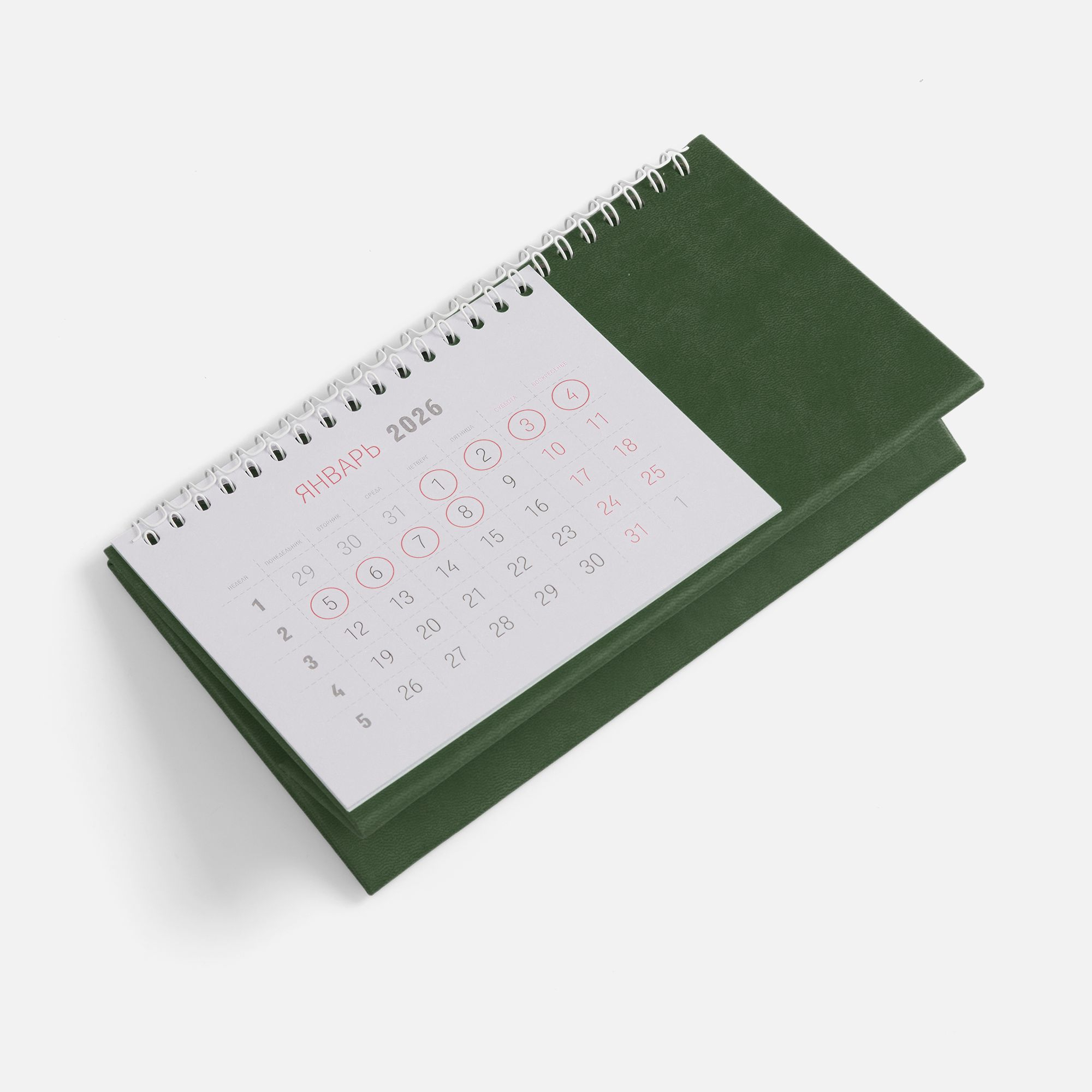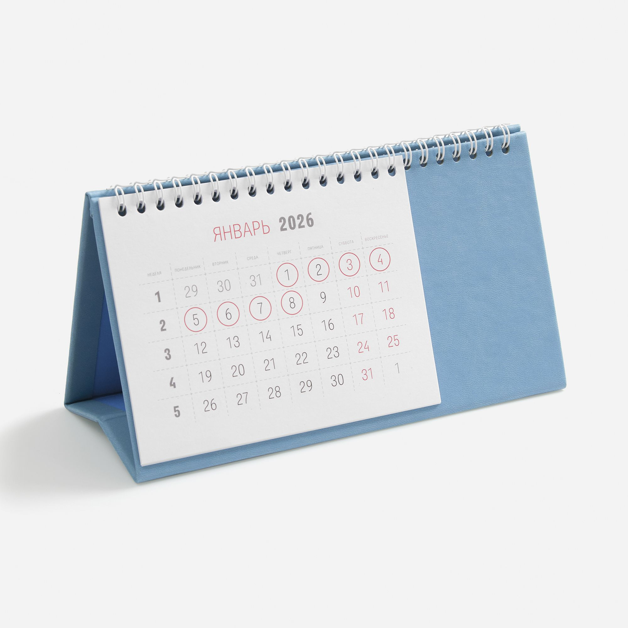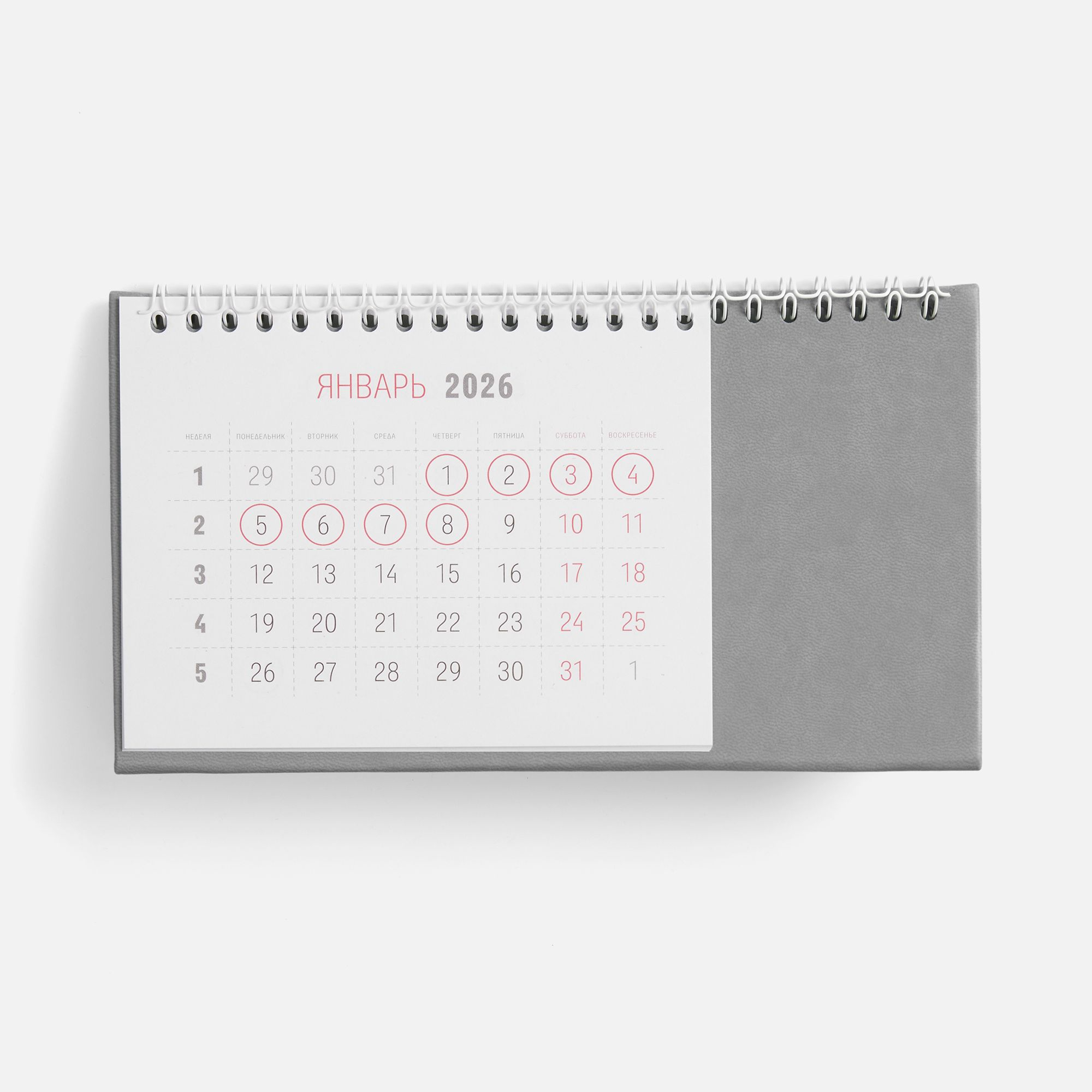 Настольный календарь — та вещь, на которую падает взгляд едва ли не чаще, чем на циферблат. Очень разумно решен вопрос нанесения: вы тратите минимум средств на нанесение своего логотипа сбоку, на корпус календаря, а не на каждый листок. Яркие насыщенные цвета подходят для нанесения тиснением наилучшим образом.