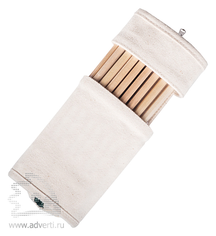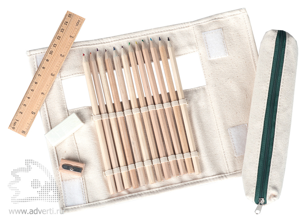 12 цветных карандашей, линейка, ластик, точилка и матерчатый чехол