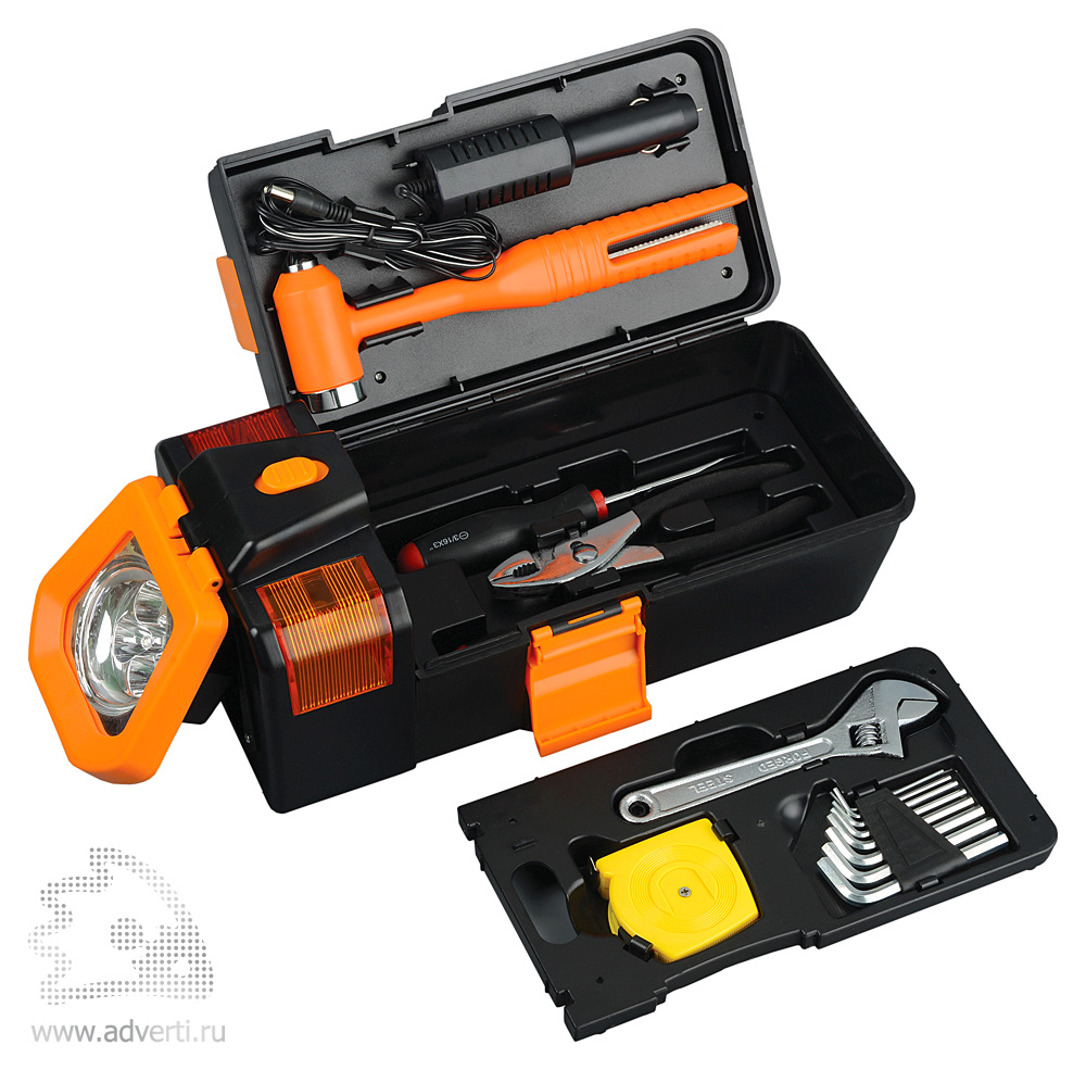 В наборе: гаечный ключ- 1шт, рулетка- 1шт, адаптер для машины- 1шт, шестигранный ключ- 8шт, молоток для чрезвычайных случаев- 1шт, отвертка плоская- 1шт
