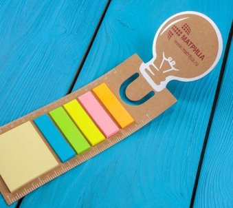 На одной из сторон закладки линейка в сантиметрах, на другой — в дюймах. В комплекте 6 видов самоклеящихся листков, по 20 каждого вида.