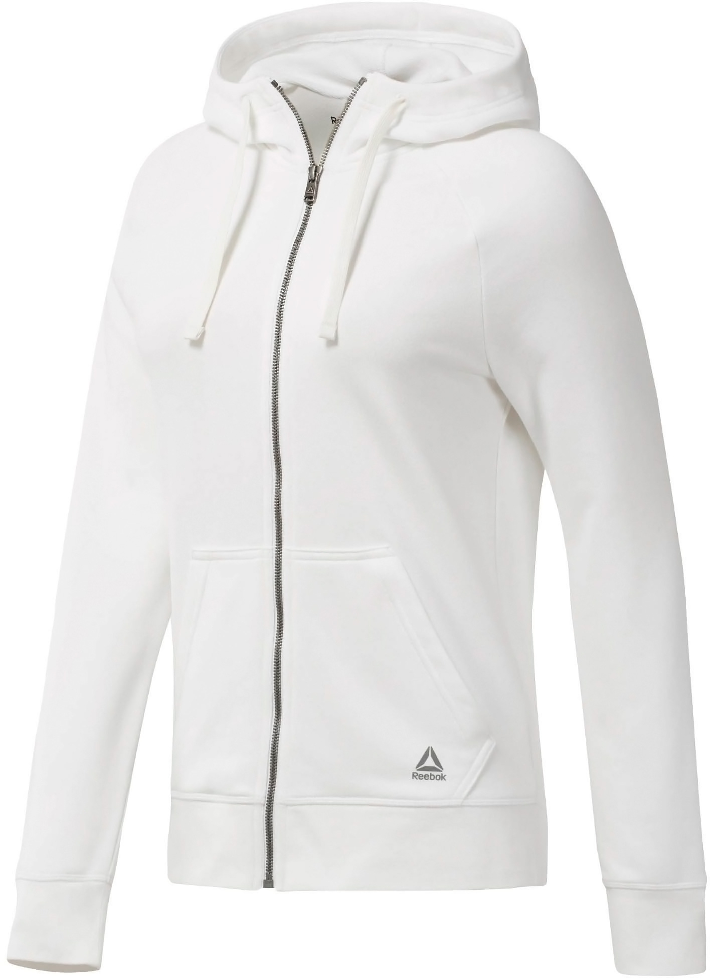 Толстовка Reebok выполнена в двух цветах на выбор — сером и белом, а также снабжена традиционным лого марки. Удобная, она не сковывает движения и согреет даже в ветер благодаря удобному капюшону, в который можно спрятать голову. Есть карманы. Выполнена из смеси хлопка и полиэстера, что позволяет изделию дольше служить и меньше деформироваться при носке и стирке.