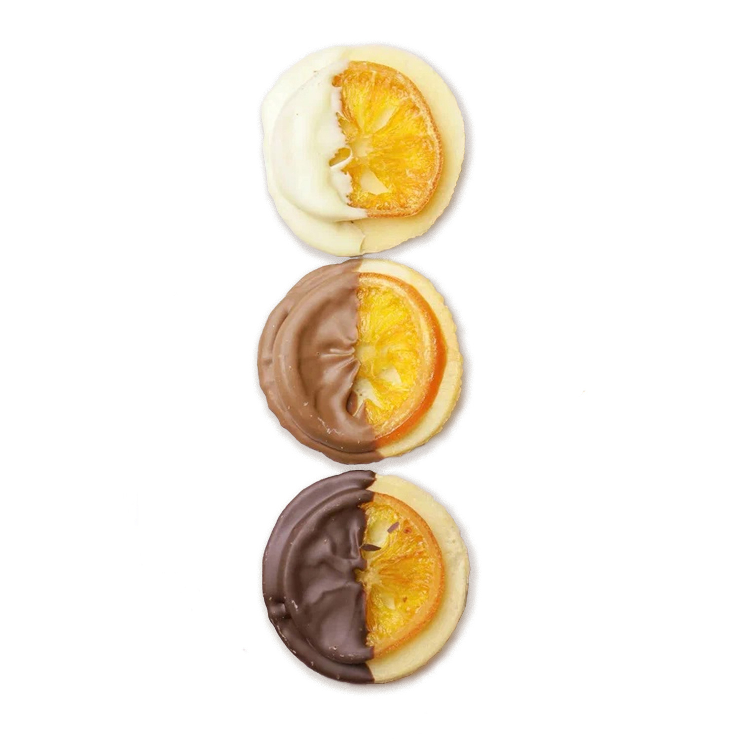 Хрустящее ванильное печенье, цукат апельсиновая долька с шоколадной глазурью.