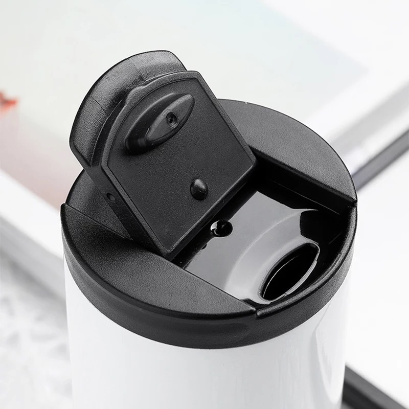 Резьбовой клапан с кнопкой позволяет гермитично сохранять и аккуратно наполнять кружку горячим напитком.