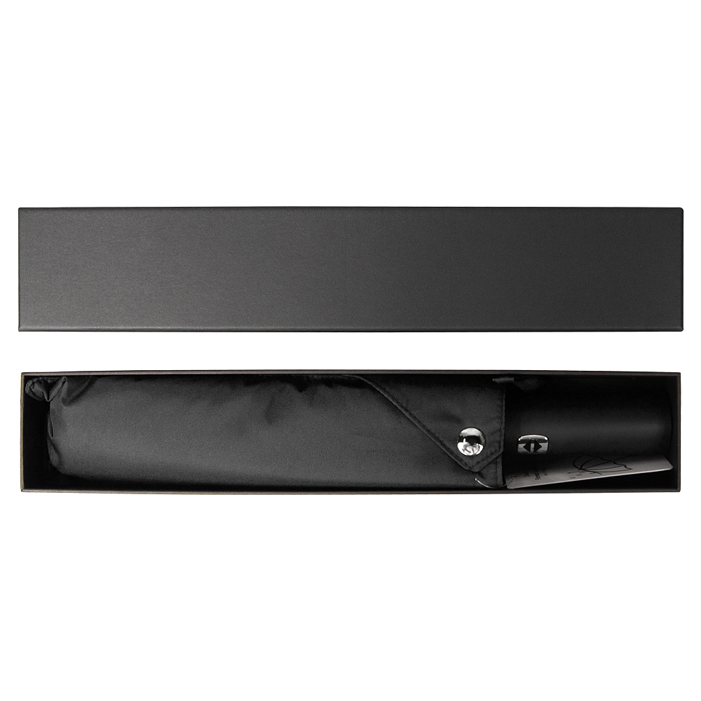 Упаковка: зонт упакован в элегантную черную подарочную коробку без логотипа, что делает его идеальным вариантом для подарка.