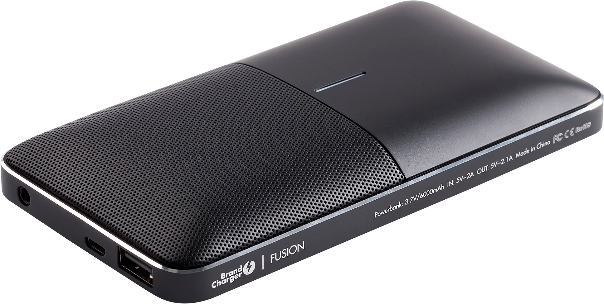 Беспроводная колонка Fusion не только оживит ваш день музыкой, но и зарядит ваш смартфон — емкость встроенного аккумулятора (6000 мАч) позволяет полностью зарядить два раза стандартный смартфон или же проигрывать музыку в режиме колонки 14 часов.