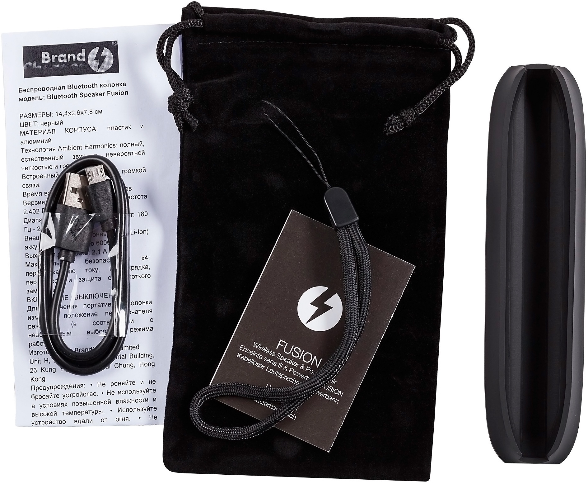 Беспроводная колонка Fusion с внешним аккумулятором, usb провод, чехол для хранения, инструция купить сувенирную продукцию с логотипом на сайте adverti.ru