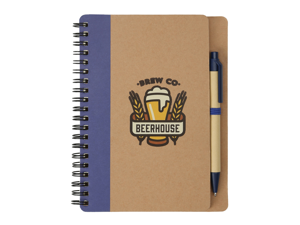 Любителям экологически чистых блокнотов будет наверняка интересно взглянуть на блокнот вторичной переработки, сделанный из крафтового картона. Ручка под цвет блокнота.
