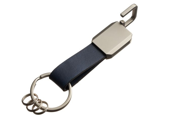 Брелок кожаный в подарочной упаковке "Sylvester" – выполнен из натуральной телячьей кожи насыщенного с металлической фурнитурой матового серебристого покрытия. Практичный поворотный карабин, с одной стороны, обеспечивает удобное крепление к поясной петле или сумке. С другой стороны расположено основное кольцо с тремя раздвижными колечками для упорядочивания ключей.