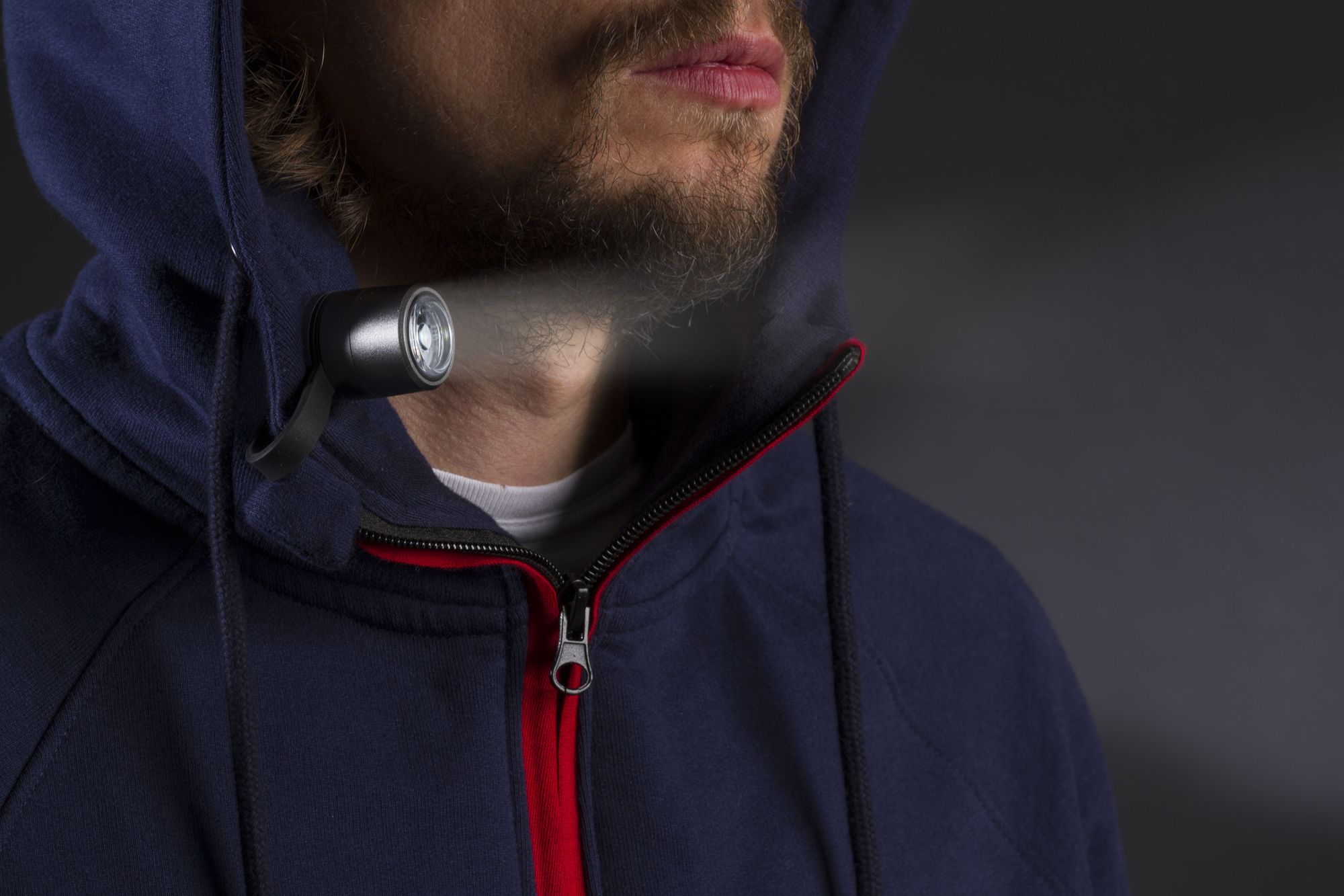 Магнитное крепление надежно зафиксирует его на одежде (воротнике, капюшоне или кармане), сумке или велосипеде.