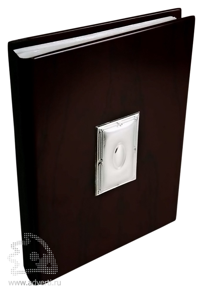 Обложка из дерева с серебряным декоративным шильдом.