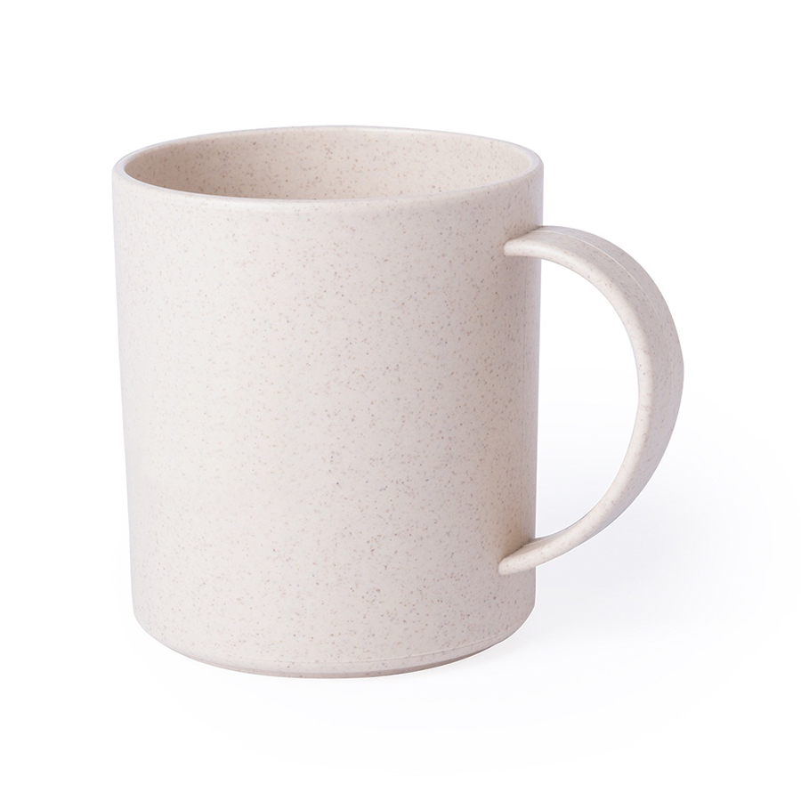 Бежевая кружка из смеси полипропилена и бамбука, материала, за которым, возможно, будущее. Материал позволяет уменьшить количество используемого пластика в мире и абсолютно безвреден для человека.