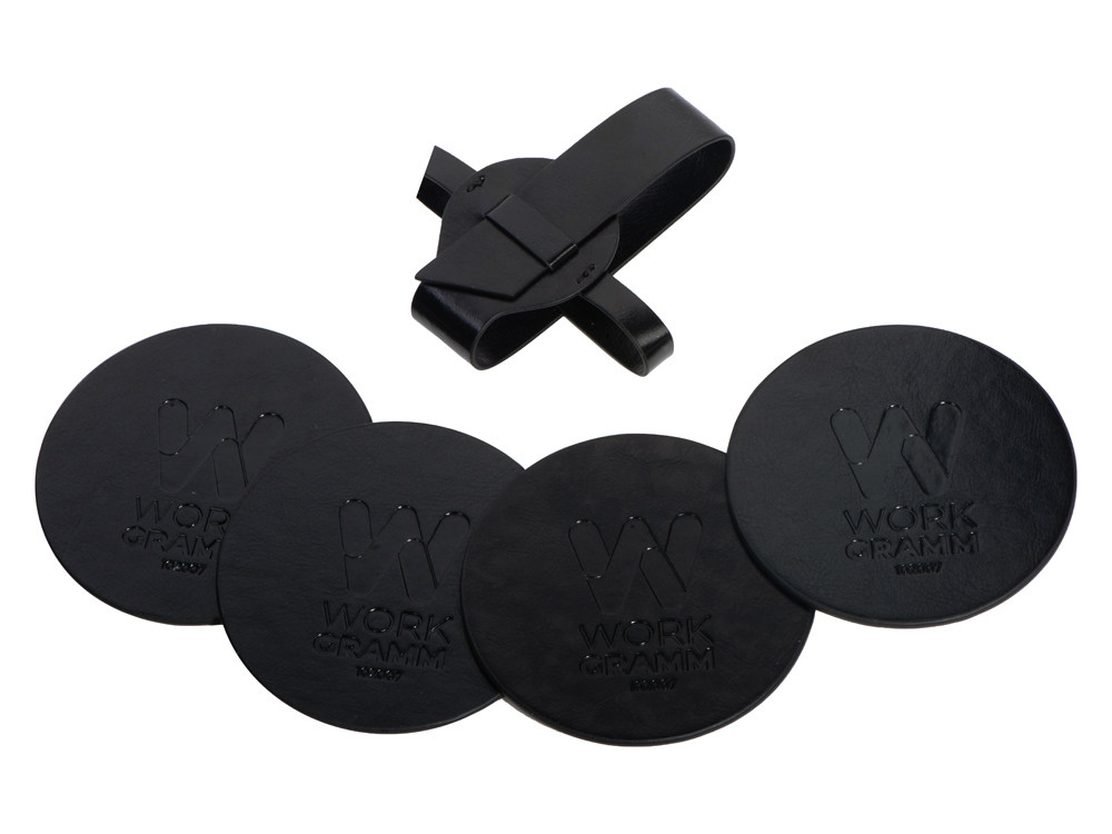 Набор состоит из четырех подставок и ремня-чехла, с помощью которого костеры очень удобно хранить в одном месте.