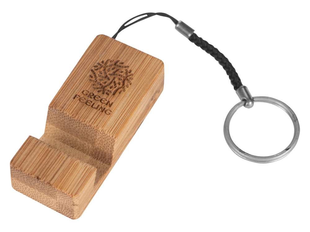 Этот брелок из бамбука станет отличным многофункциональным аксессуаром: и брелоком для ключей, и удобной подставкой для телефона.