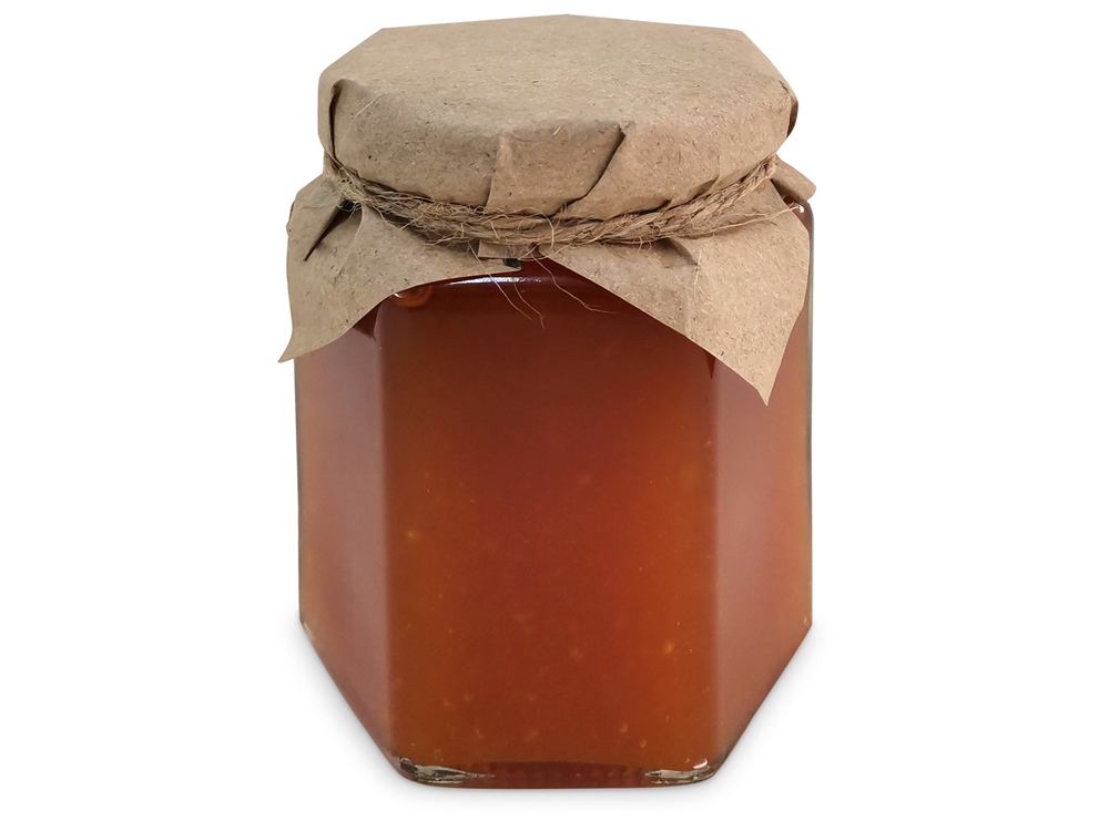 Низкокалорийный конфитюр на яблочном пектине с кусочками абрикоса.