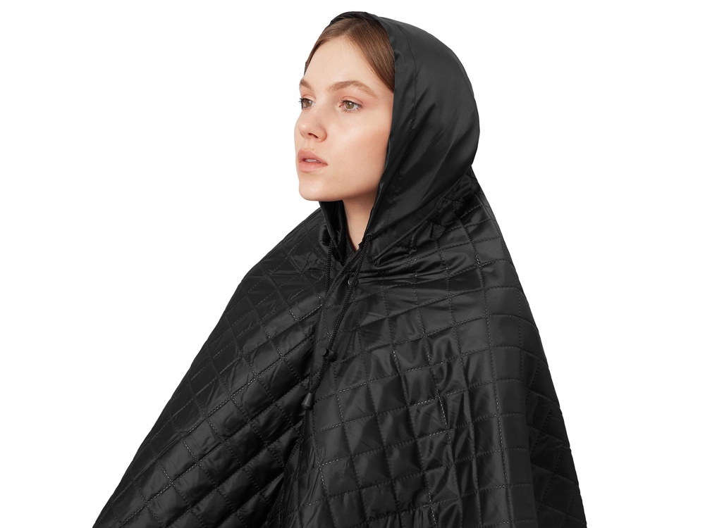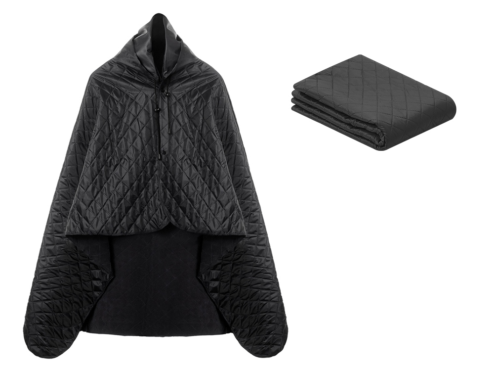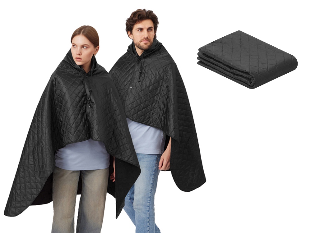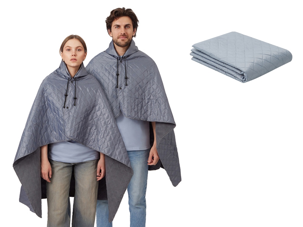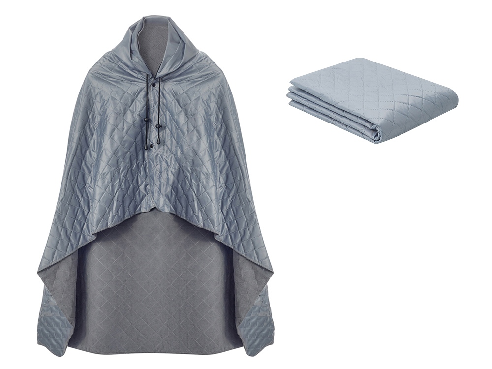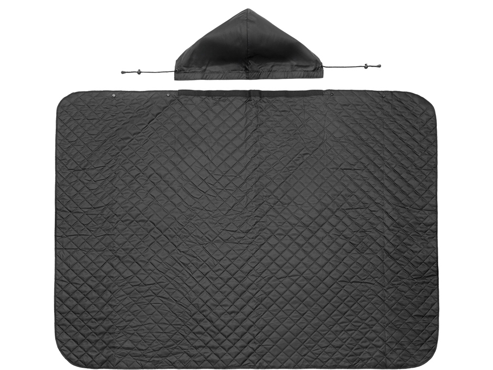 Для больше удобства использования пледа во время дождя в комплекте идет капюшон, который фиксируется с помощью " липучки".
