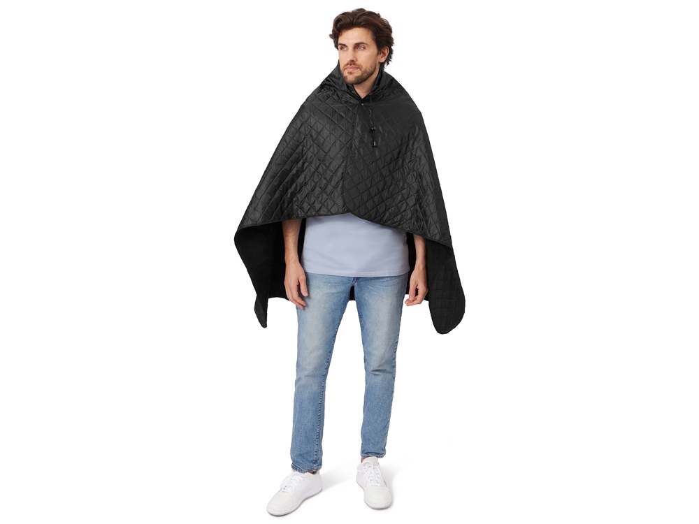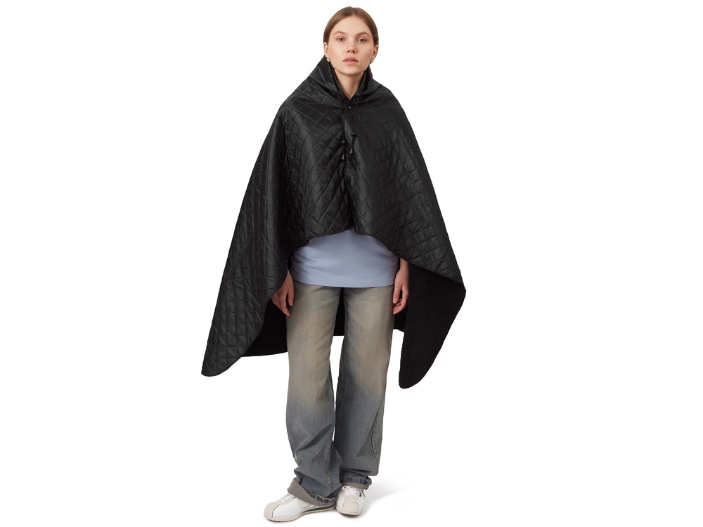 Накинув плед на плечи, застегните его на кнопки вверху и наденьте капюшон.