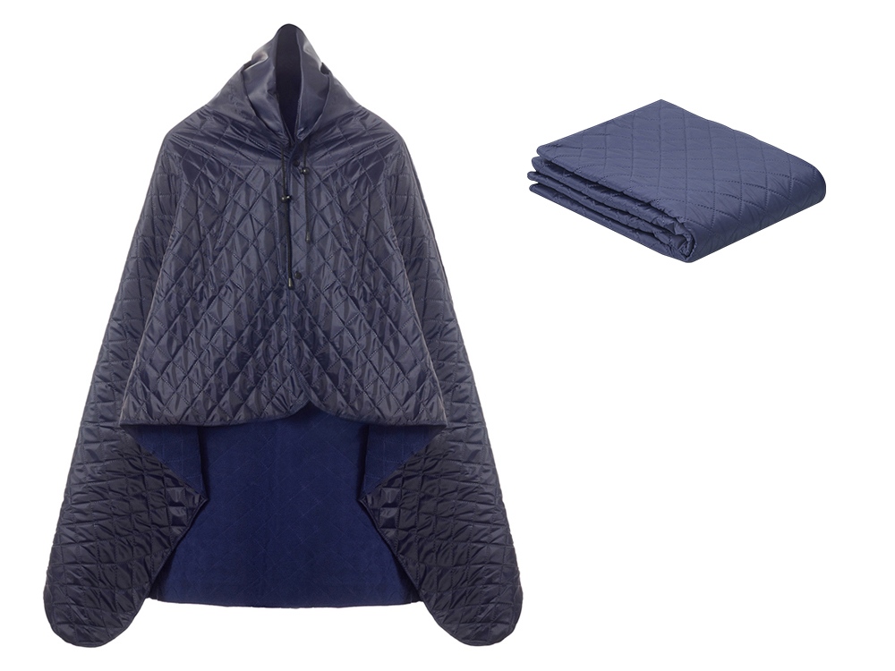 Плед 2-в-1 можно использовать как непромокаемое покрывало на землю и как согревающую и непромокаемую накидку во время пикника на природе.