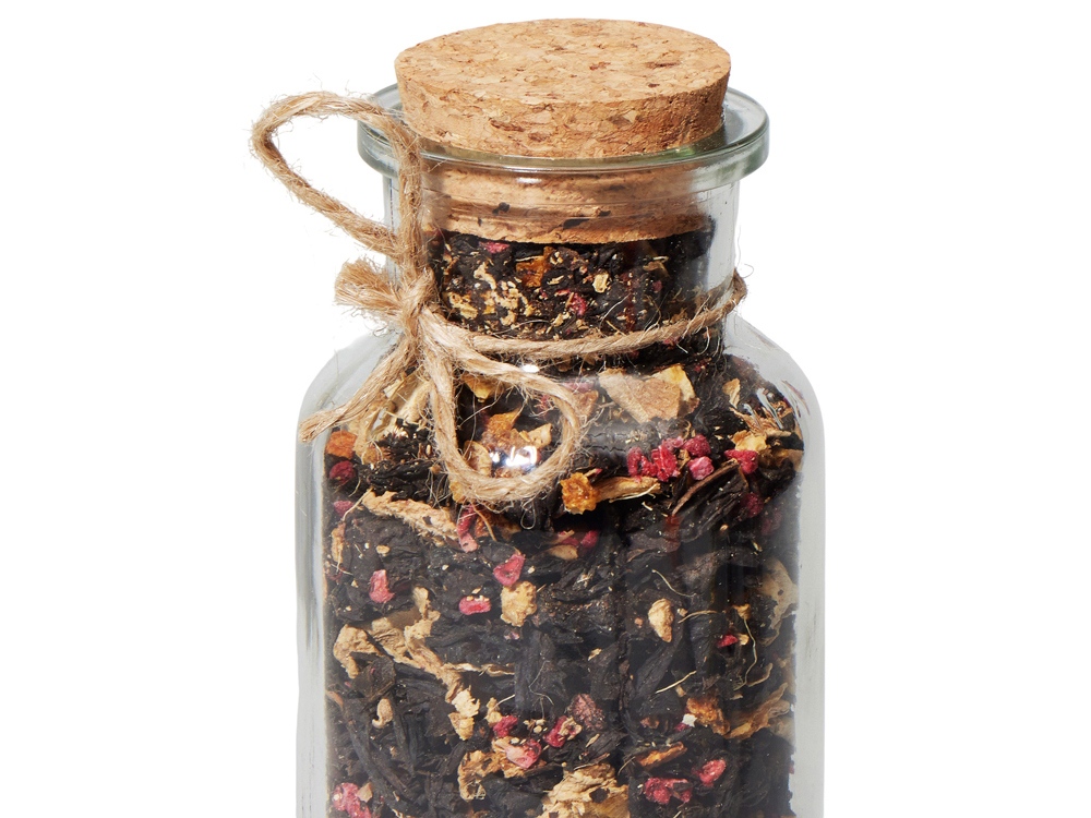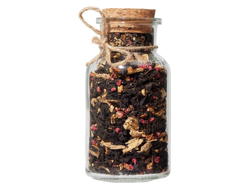 Состав: чай черный с имбирем и соком имбиря ( чай черный байховый крупнолистовой, кусочки имбиря, сок имбиря), аппельсиновая цедра сушеная, малина сублимированная, ароматизатор натуральный Малина.