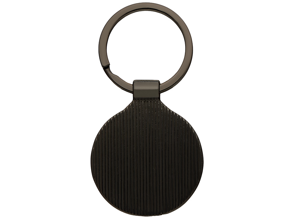 Классическая для брелка форма круга в стильном и необычном исполнении с рифленой на обороте поверхностью.