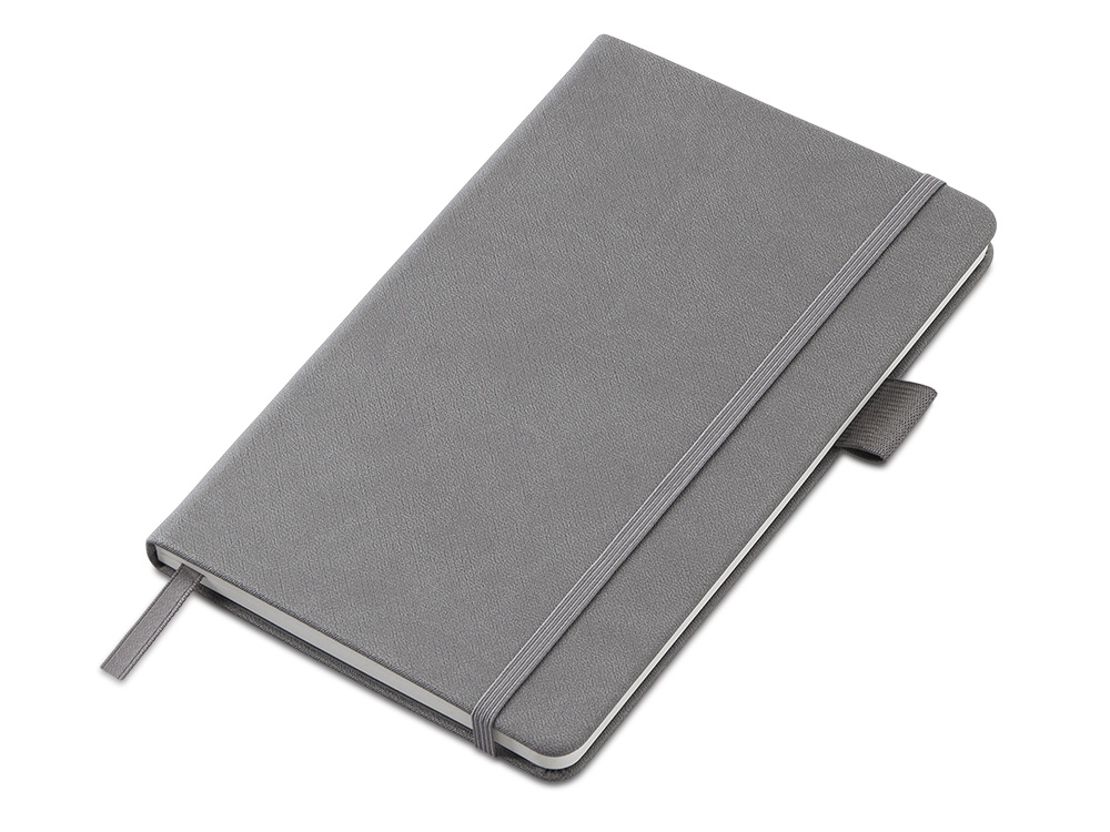 Стильный блокнот в твердой обложке из текстурной искусственной кожи, приятной на ощупь.