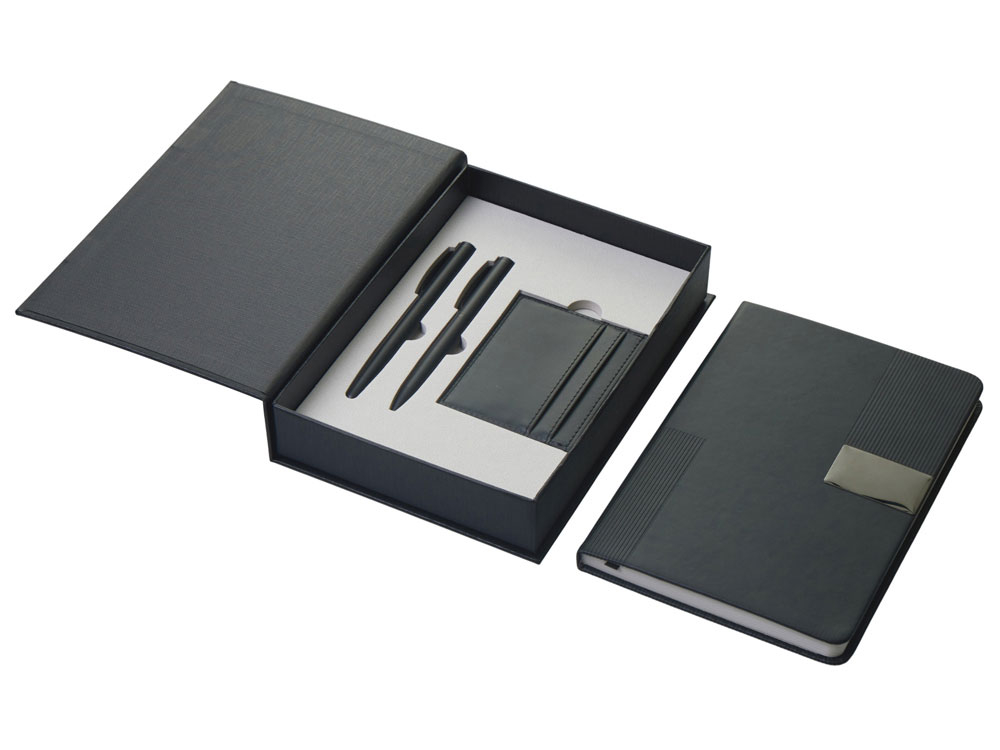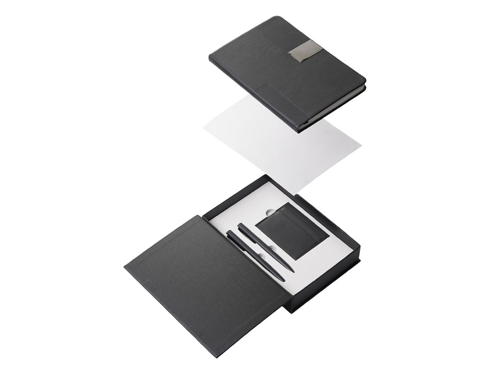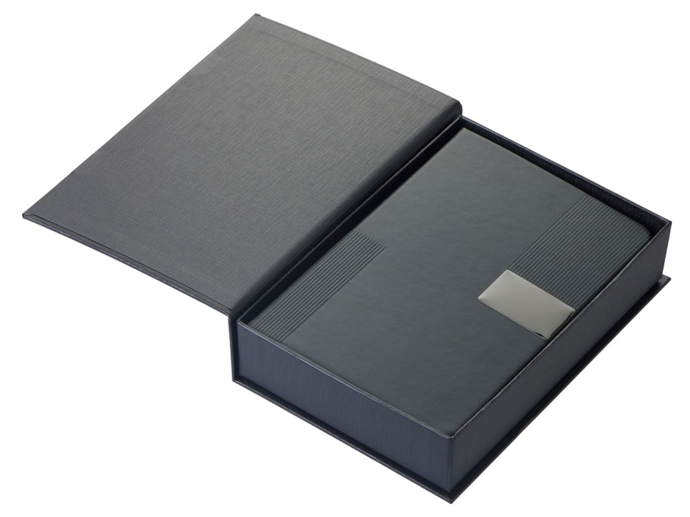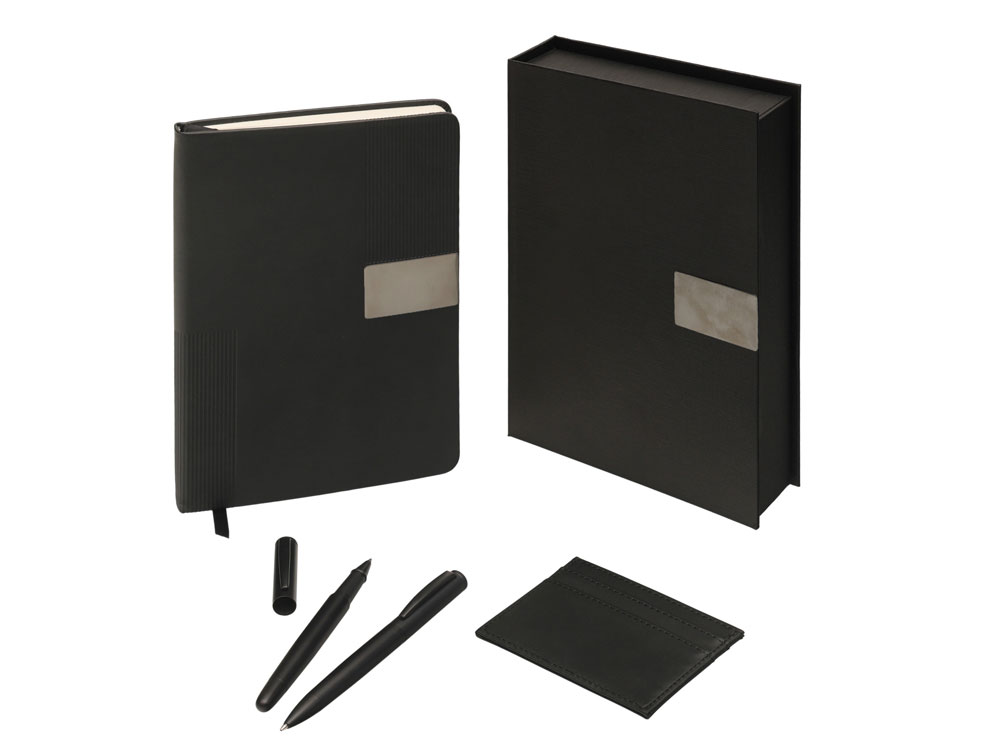 Завершает этот комплект блокнот в твердой обложке из искусственной кожи.