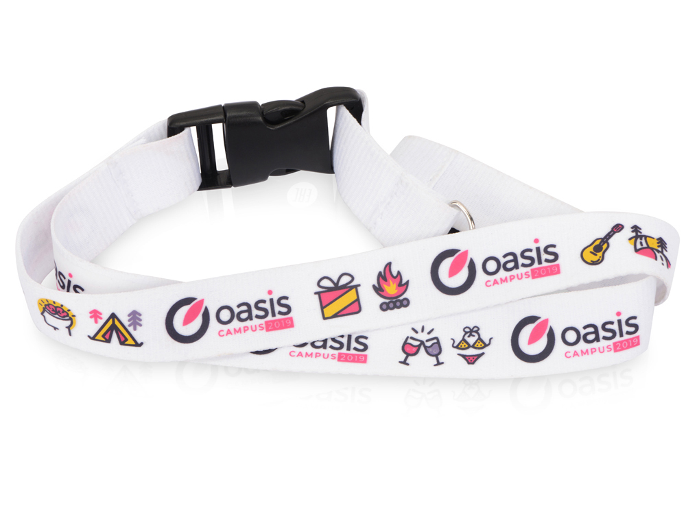 Шнурок Yogi, со съемным креплением, белый, пример нанесения купить сувенирную продукцию с логотипом на сайте adverti.ru