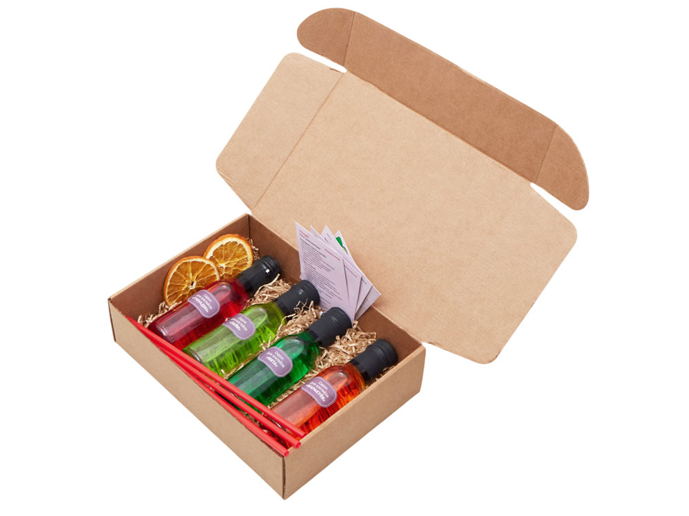 - 4 бутылочки сиропов по 100 мл с яркими вкусами: Лайм, Маракуйя, Мята, Гренадин – классика коктейльного бармена.