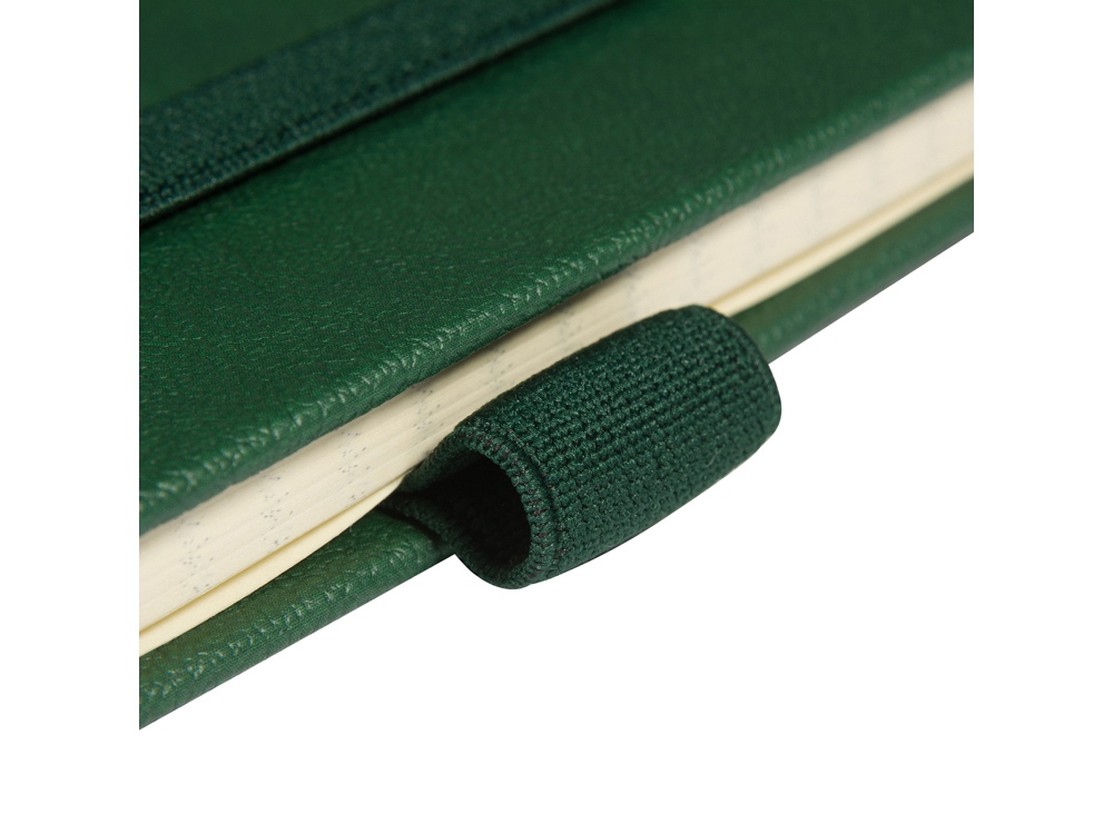 Твердая обложка с углами закругленной формы, фиксирующая резинка и ляссе в цвет обложки, петля для ручки и картонный карман для бумаги на внутренней стороне обложки наделяют блокнот практичностью.