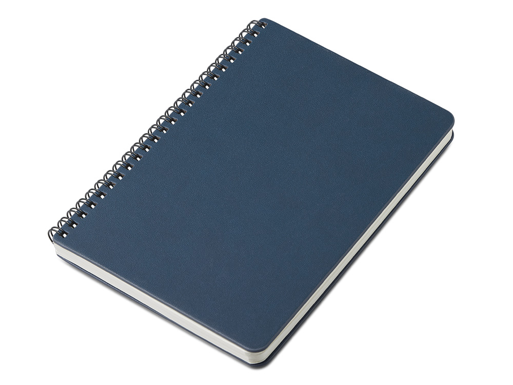 Стильный блокнот на спирали в твёрдой обложке из искусственной кожи.