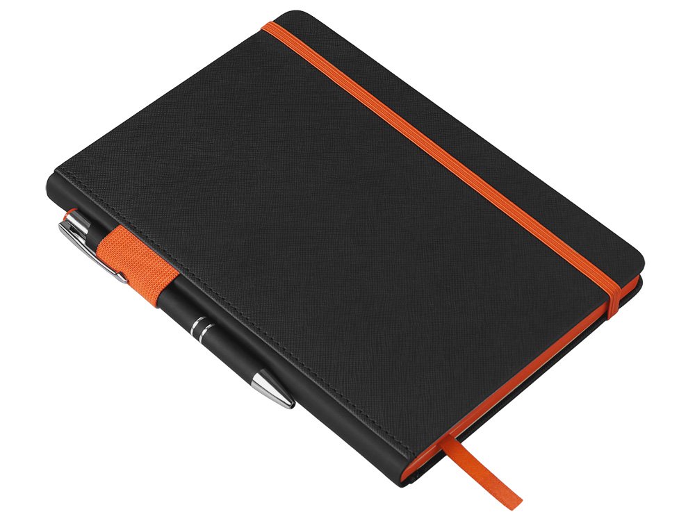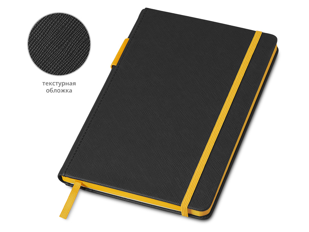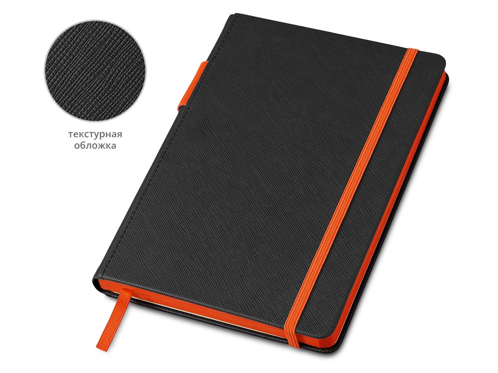 Обложка выполнена из текстурной искусственной кожи черного цвета, а яркие детали и срез делают его ярким и заметным бизнес-аксессуаром.