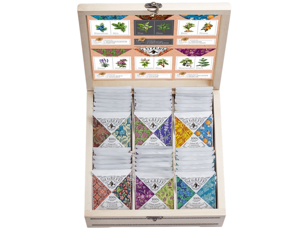 В шкатулке находится 84 саше, по 14 на каждый из 6 вкусов.