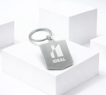 Брелок с квадратным полем для нанесения логотипа. Матовая поверхность скромно оттенит нанесение вашего логотипа, который заиграет в металле.