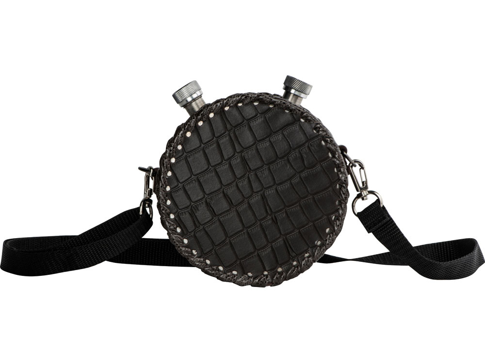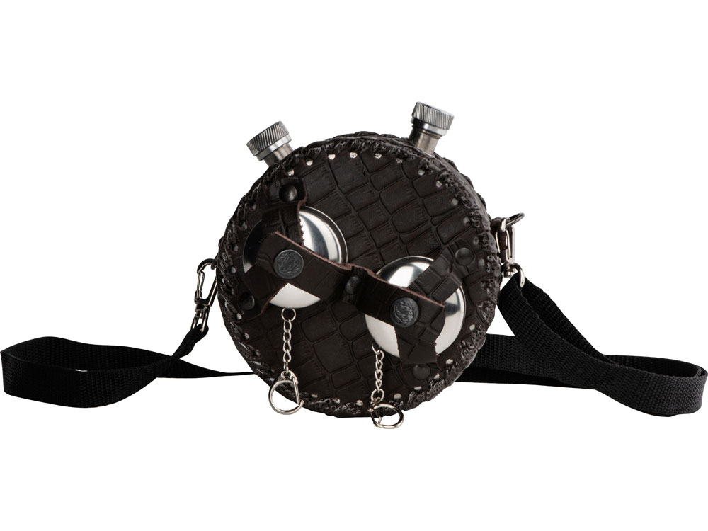 Двойная фляга из нержавеющей стали в оплетке из натуральной кожи.