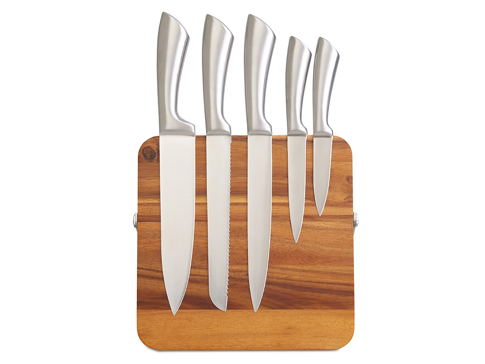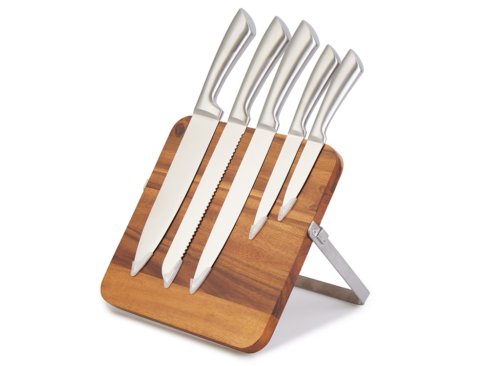 магнитная доска - 24х23,1 см, ножи: поварской - 34х4 см, универсальный - 33,5х2,6 см, для хлеба - 33,5х3 см, для овощей - 23х2 см и 20х2 см