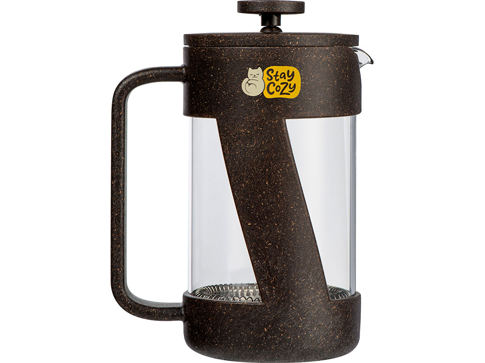 Оплетающая стеклянную колбу часть выполнена из переработанных кофейных зерен, смешанных с пластиком и древесными волокнами.