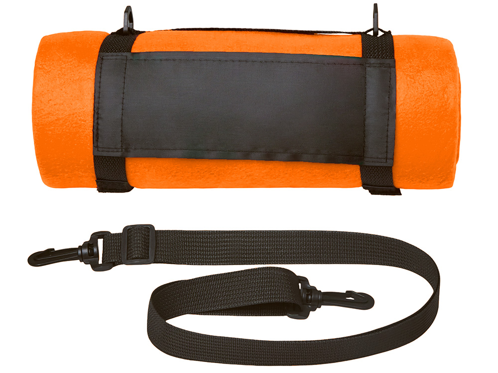 Плед сворачивается и надежно фиксируется ремешками. С помощью съемного ремня его можно носить на плече. Плед удобно брать с собой в поездки и командировки, а также можно использовать в автомобиле.