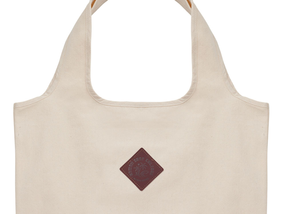 Вместительная сумка-шоппер из очень плотного переработанного хлопка с широкими лямками и большим наружным карманом 20 x 25 см спереди.
