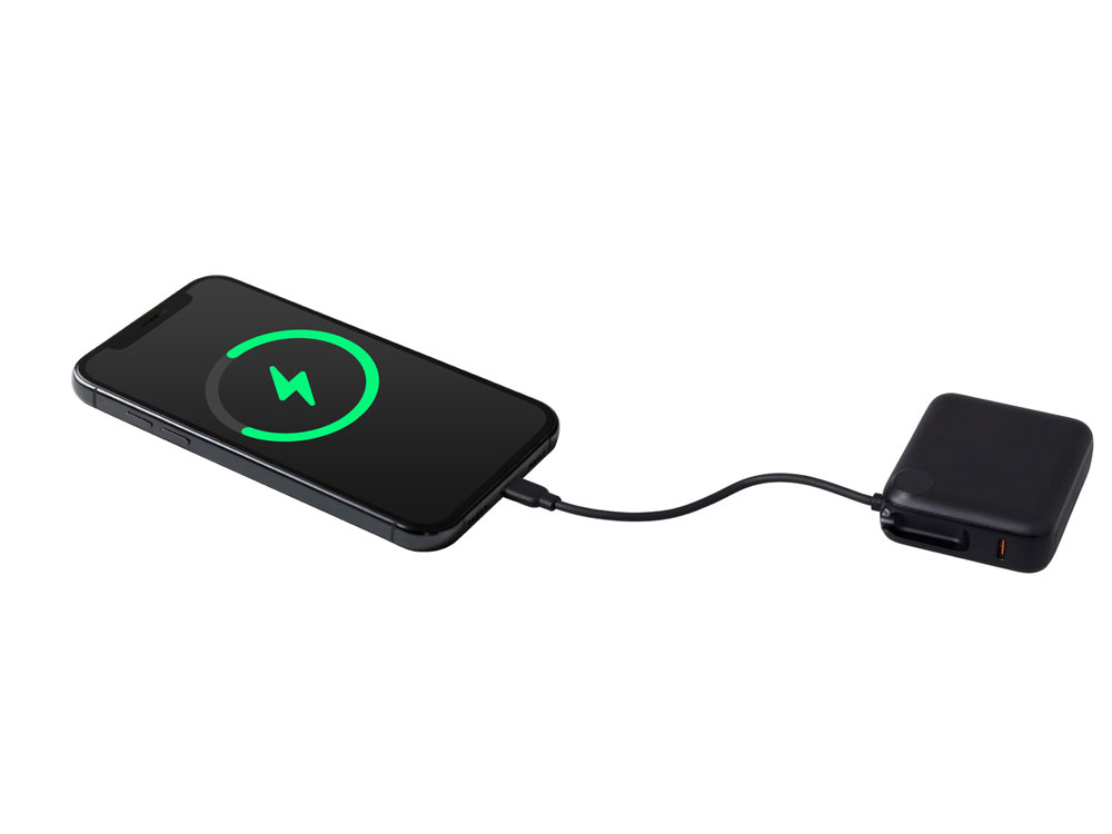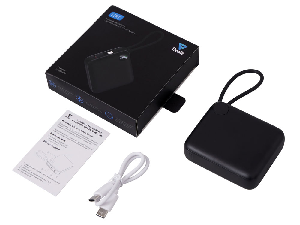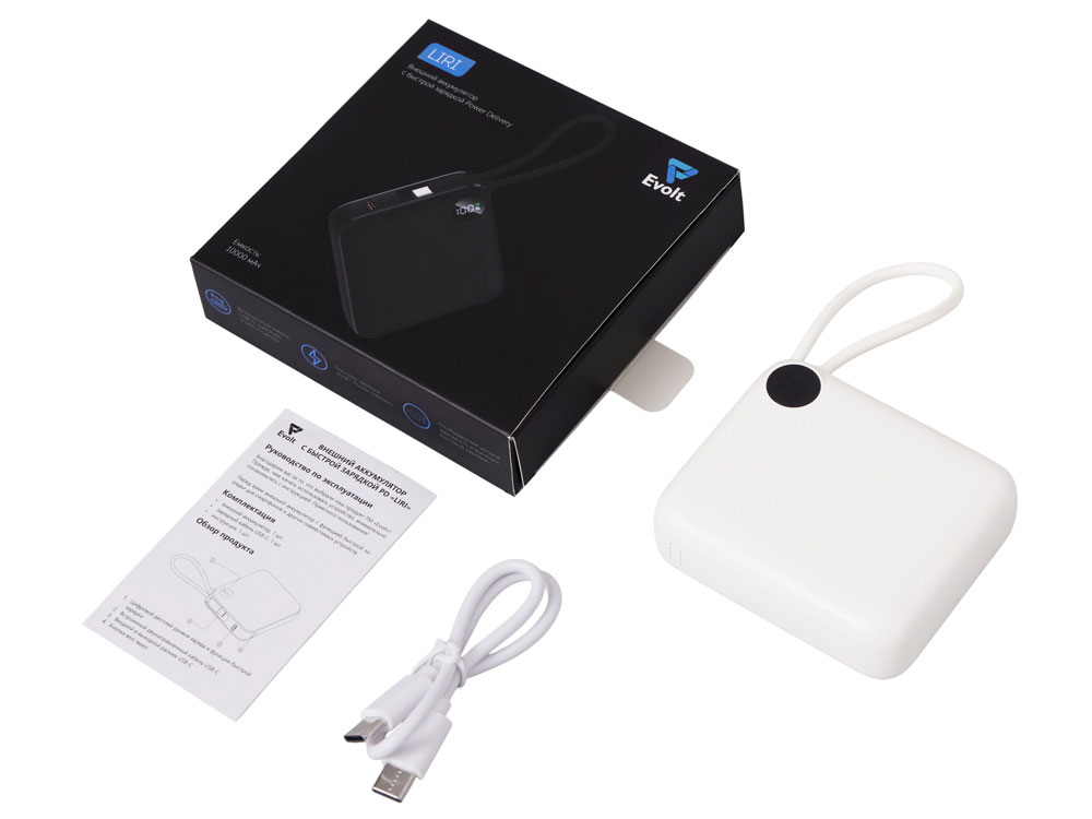 Встроенный двунаправленный кабель-петелька USB-C — всегда под рукой! Заряжает смартфоны по USB-C (в т.ч. новые iPhone), а также заряжается сам по встроенному кабелю.