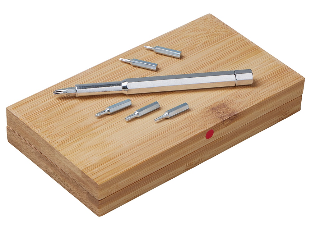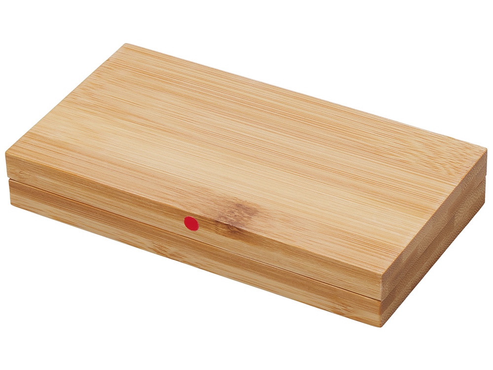 Набор выполнен из экологичных материалов — прочной стали и натурального бамбука. Магнитная фиксация крышки.