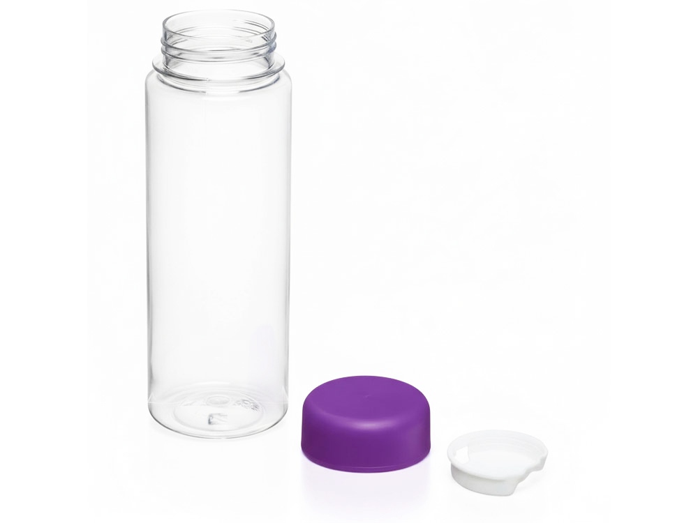 Лаконичный внешний вид позволяет нанести на аксессуар логотип компании. Прозрачный корпус дает возможность контролировать количество содержимого. Благодаря съемному фильтру в воду можно добавлять лимон, мяту и фрукты. Силиконовое кольцо предотвращает протекание, а крышка надежно закрывает бутылку.