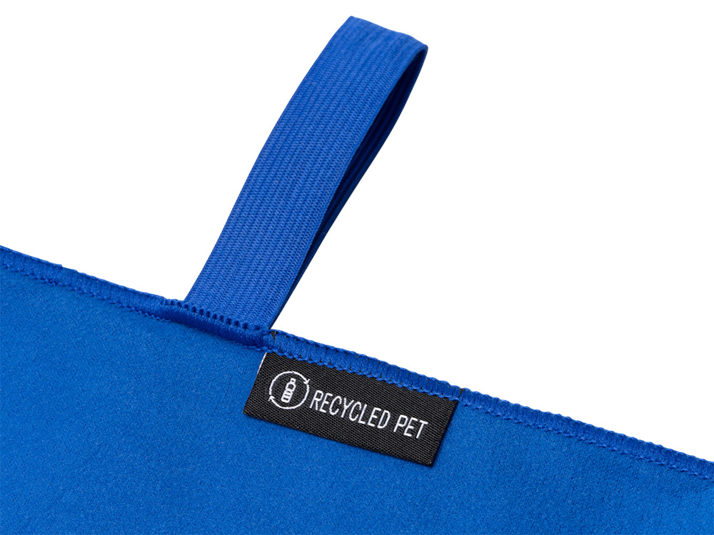 Легкое полотенце из микрофибры, изготовленное из переработанного ПЭТ, с ремешком для складывания и удобной транспортировки.