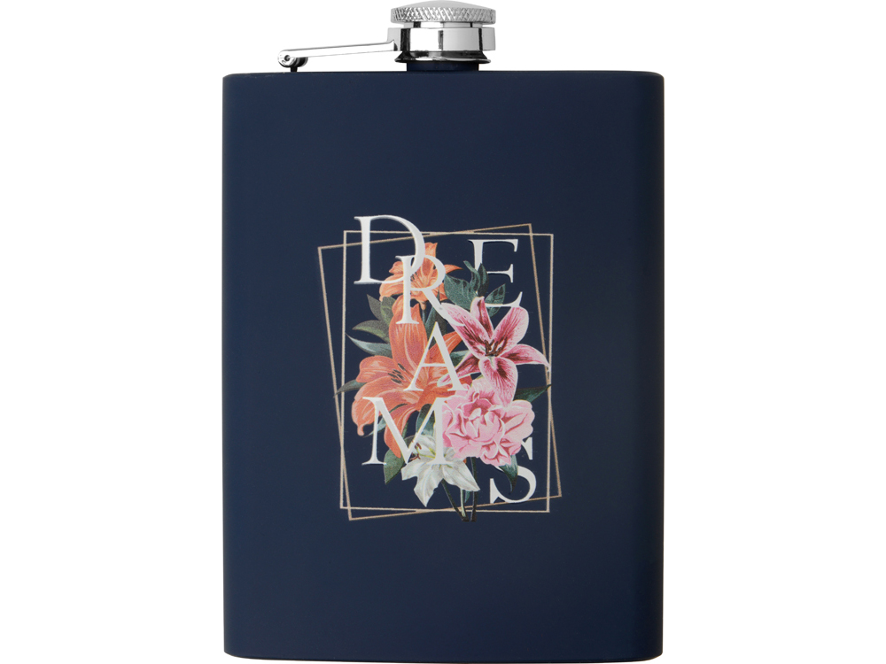 Бархатистая фляжка, упакованная в индивидуальную коробку. Под бархатистым цветным слоем — нержавеющая сталь, которая прекрасно подходит для хранения напитков. Интересно смотрится в сочетании с нанесением.
