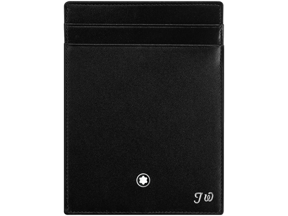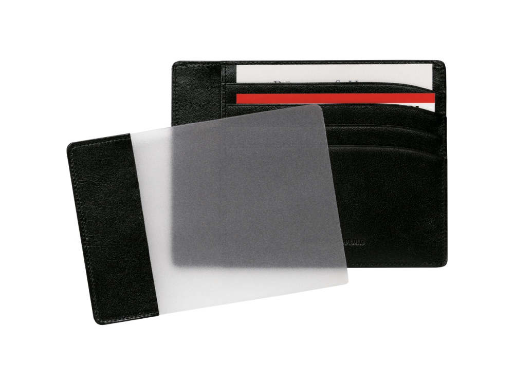Стильный картхолдер от Montblanc для тех, кто громоздким кошелькам и портмоне предпочитает легкость и компактность, но не готов расстаться с элегантностью стильных деловых аксессуаров Montblanc. Картхолдер из черной зернистой южно-германской яловичной кожи, подкладка из черного жаккарда, 4 отделения для кредитных карт, 3 дополнительных отделения, отделение для удостоверения личности.